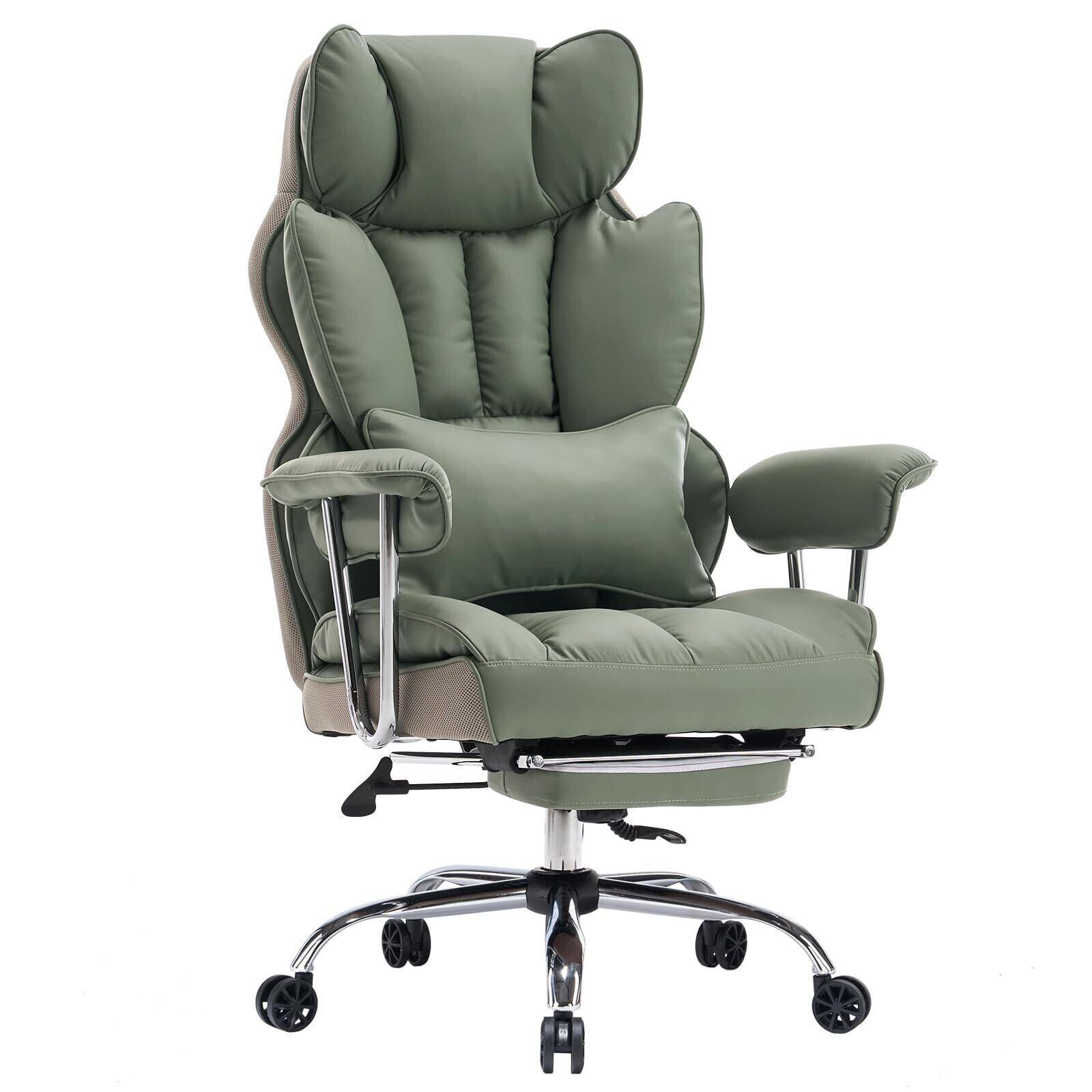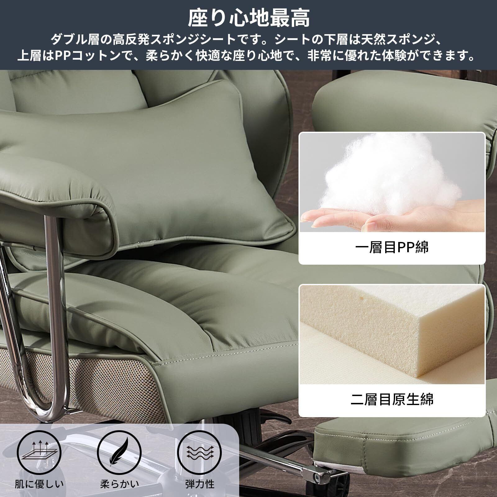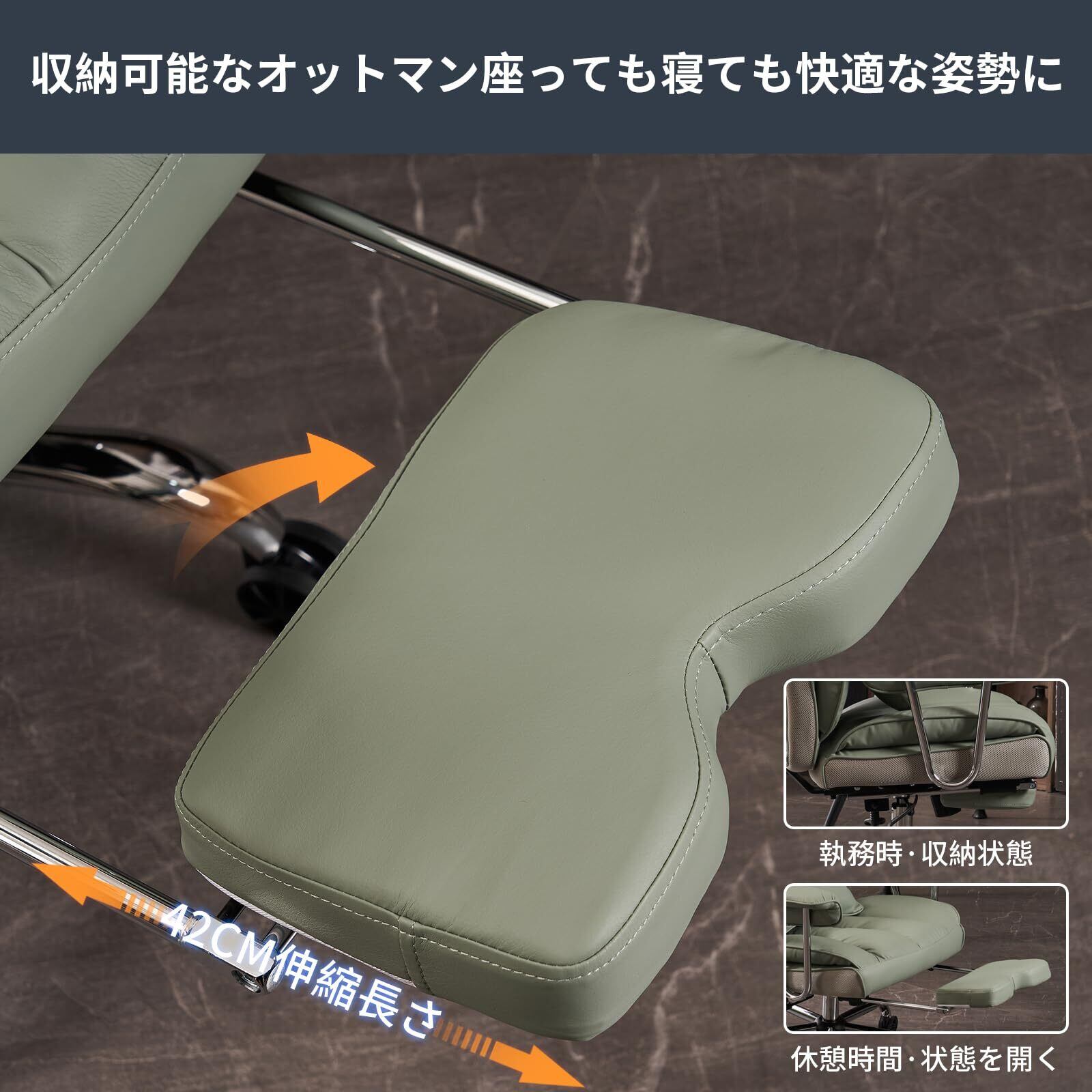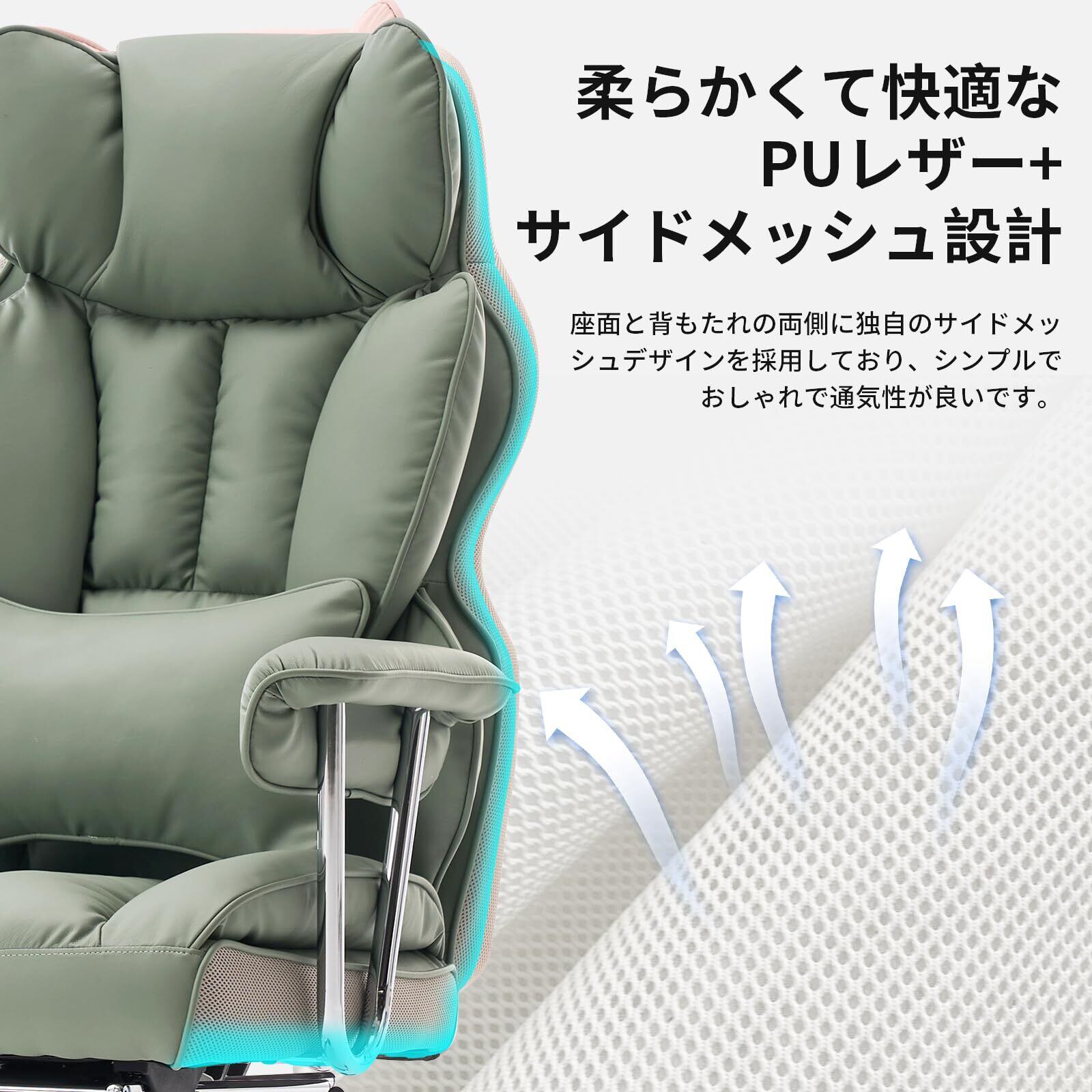 SKYE ゲーミングチェア デスクチェア オフィスチェア ゲーム用チェア パソコンチェア 伸縮可能のオットマン 椅子 テレワーク 社長椅子 高さ調節機能 PUレザー (ライトグリーン)