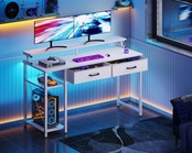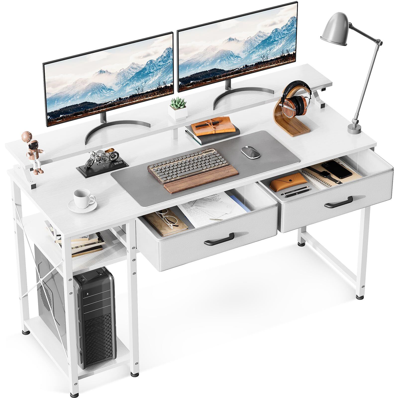 ODK ゲーミングデスク ラック&引き出し2杯付き 幅120cm パソコンデスク 机 pcデスク モニター台付き ワークデスク オフィスデスク おしゃれ 省スペース 一人暮らし 在宅勤務 左右入れ替え対応 ホワイト