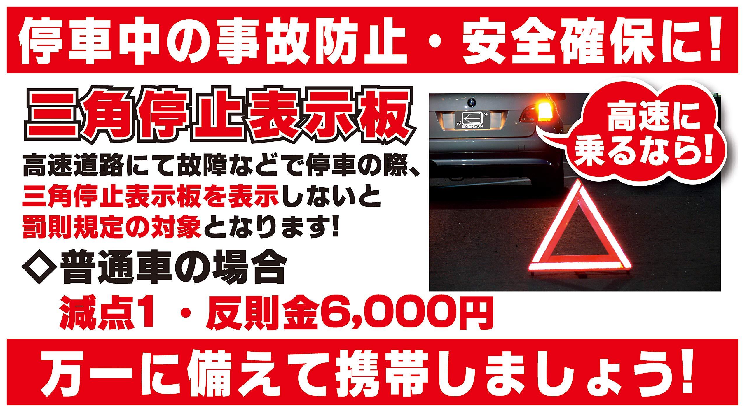 新車購入時には車載されてません!風圧に強く高速道路上でも安全に使用可能! ! 高速道路や自動車専用道路等で車を停止せざるを得ない場合、三角停止表示板を表示していないと、道路交通法違反となります! 1台に1つ常備しておきましょう。
