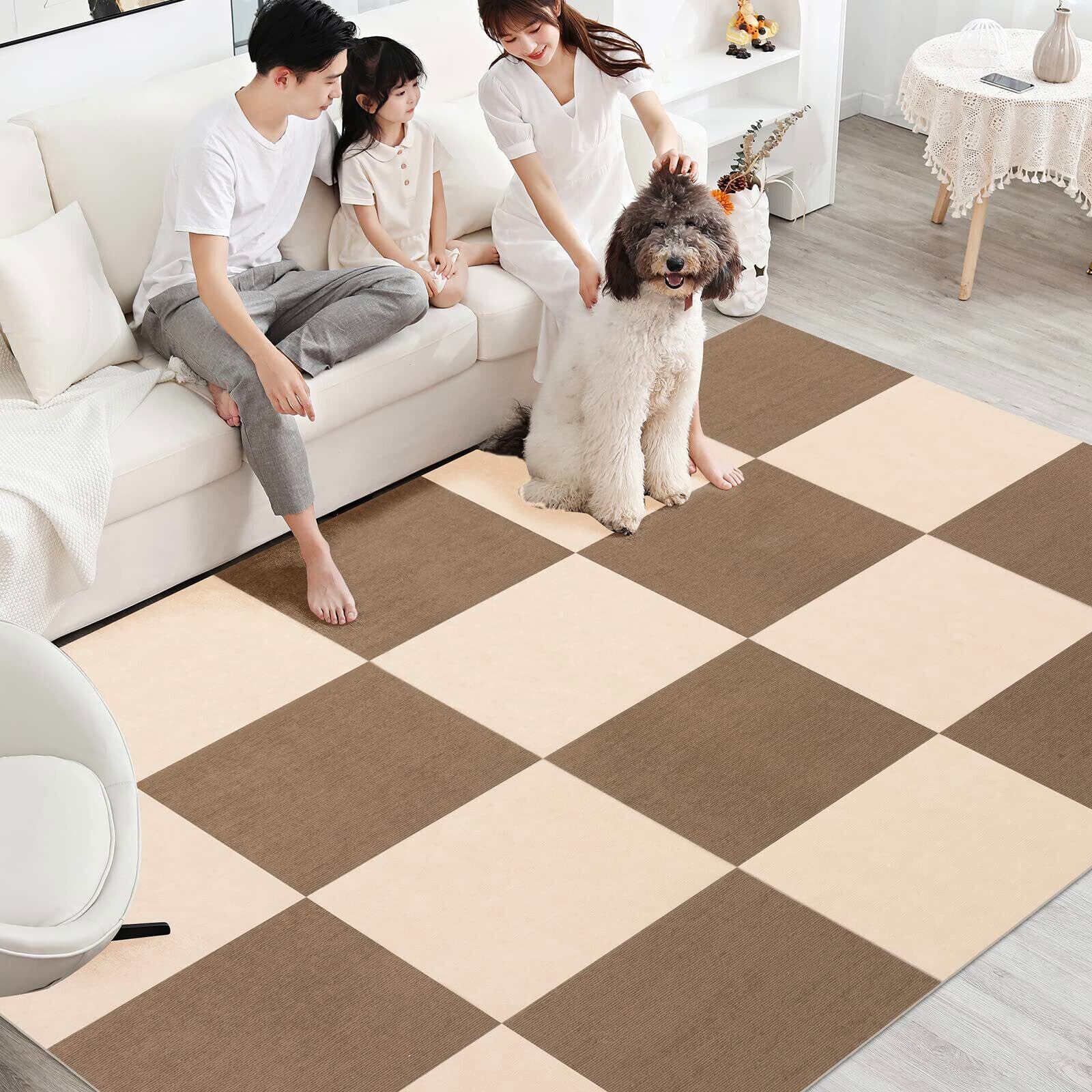 ジョイントマット BOBO タイルカーペット タイルマット 床保護 チェアマット ズレにくいマット 洗える カット可能 吸着カーペット ペット猫犬用 掃除ラクラク 防音 床暖房対応 色:モカ*アイボリー【30*30CM*12枚入り】