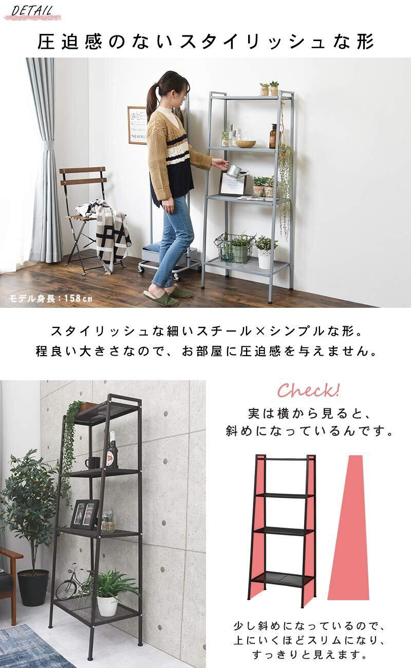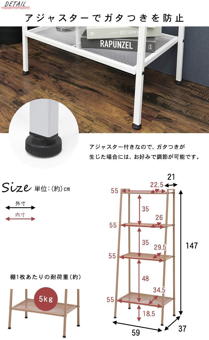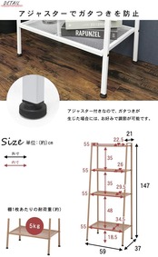 (約)幅59×奥行37×高さ147cm、棚板耐荷重:約5kg