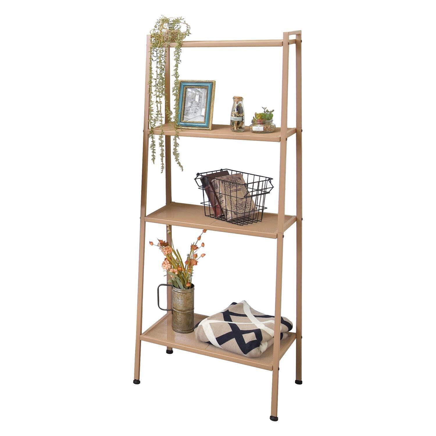 【特価セール】萩原 オープンラック シェルフ スチールラック 棚 【くすみカラー】メッシュタイプ キャラメルブラウン KR-3367LT
