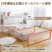 【高耐荷重構造&きしみにくい連結方法】口字構造で接地面が広く、床にキズつけにくいとともに高耐荷重を実現。また通常より広幅フレームを使用でグラつきがなく、安定感抜群!特殊の連結方法でベッドのきしみ音も減軽実現。