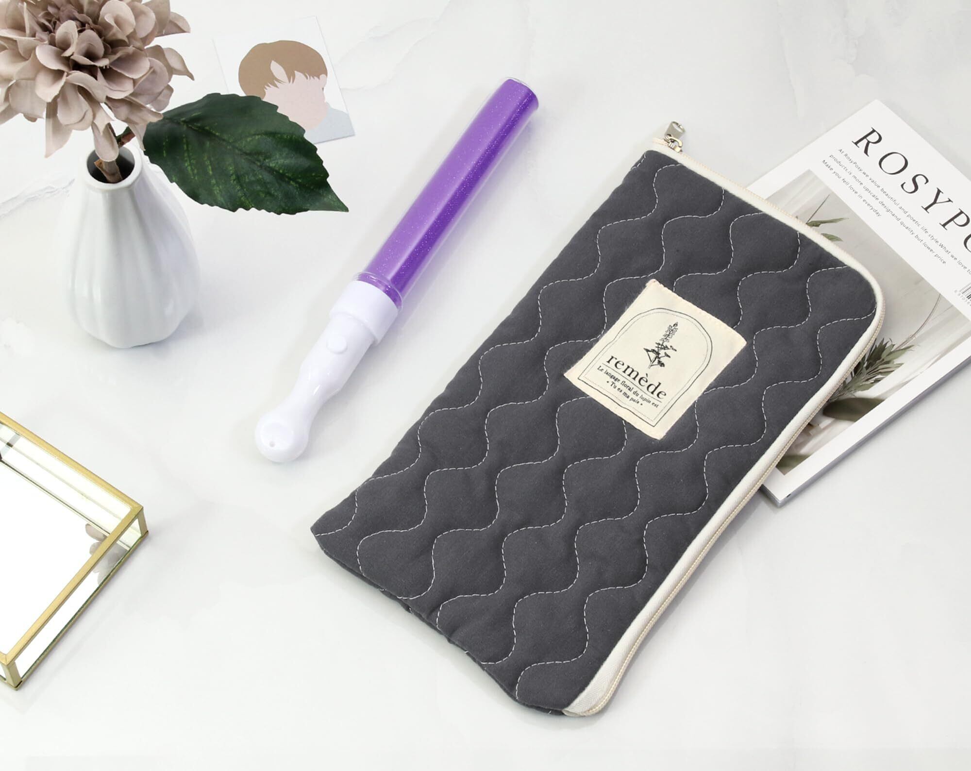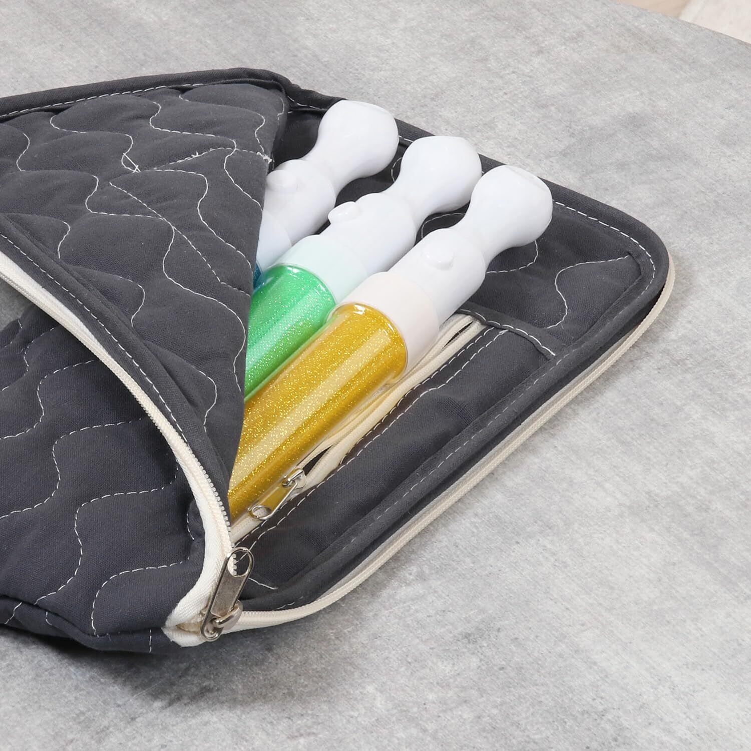不二貿易 推し活グッズ ペンライトケース ペンラケース 幅16×奥行1×高さ30cm グレー キルティング 推し活 収納 メンカラ 推しカラー 内ポケット付き remede ルメッド 53931 18758