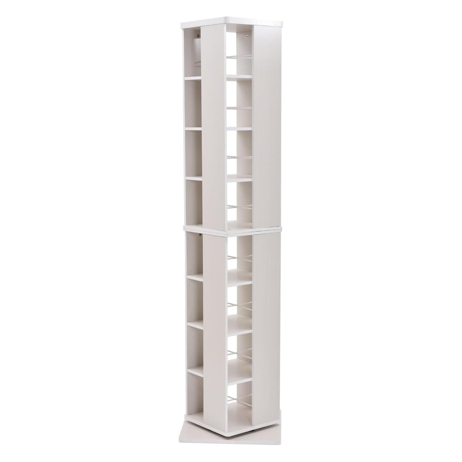 山善(YAMAZEN) 回転本棚 8段 幅45×奥行45×高さ182.5cm 壁付け・角置き可 コンパクト 大容量 組立品 ホワイト 木目調 DSRR-8(JW)