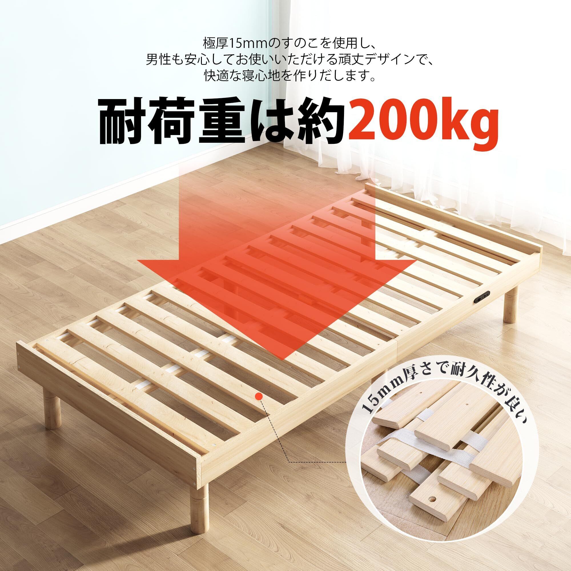 しっかりな耐荷重:厚いすのこと独自のフレーム構造で高い耐久性を実現します。フレームにはWの頑丈設計で高い200kgの耐荷重を実現します。しっかりと体を支えながら割れなどの心配なく安心しておやすみいただけます。