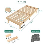 商品仕様:本体サイズ:幅97×奥行き199×高さ約36cm すのこ厚:1.2cm / すのこ幅:7cm / すのこ間隔:4.6cm 本体重量:20.08kg 耐荷重:200kg 素材:本体・脚/天然木パイン無垢材 / ※傷防止フェルト付属