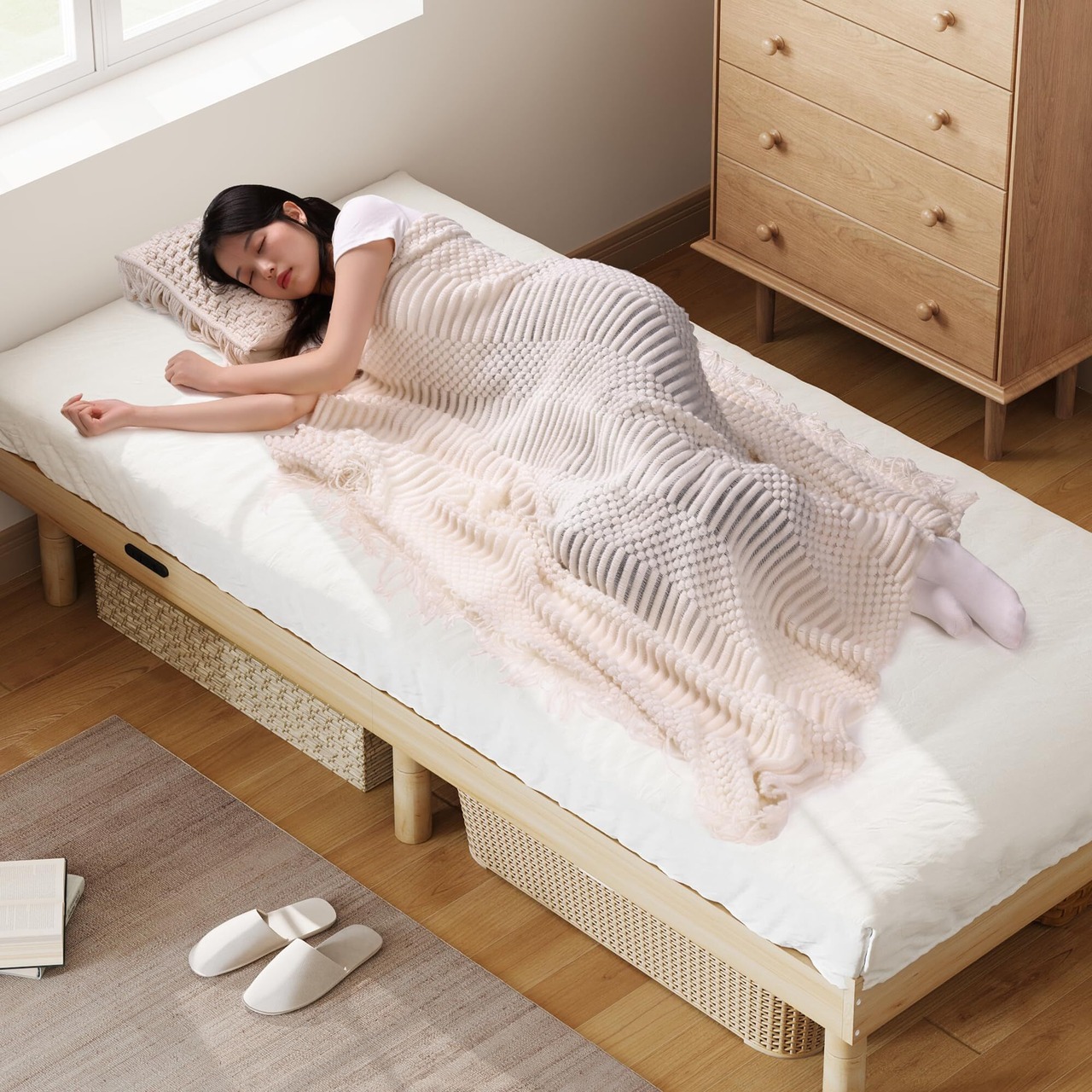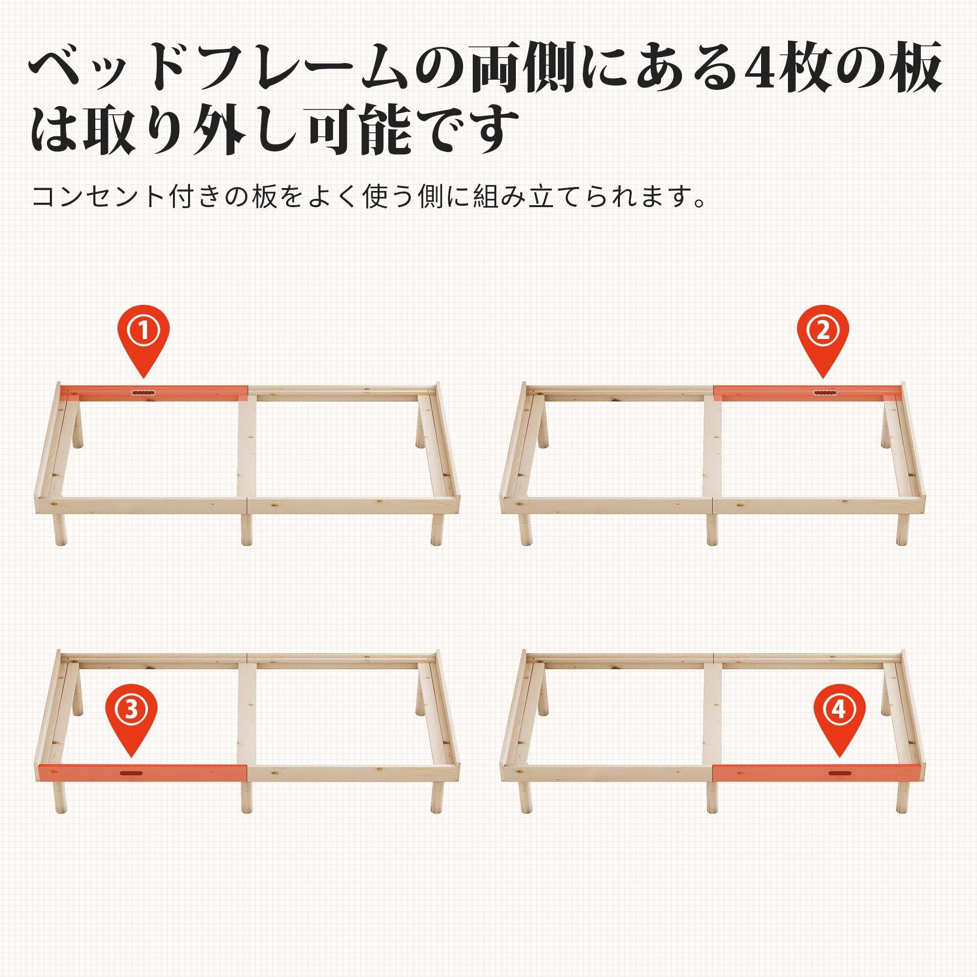 WLIVE ベッド すのこベッド シングル ベッドフレーム シングルベッド 木製 頑丈 コンセント付き 通気性 耐久性 ベッド下収納 フレーム 組み立 ナチュラル