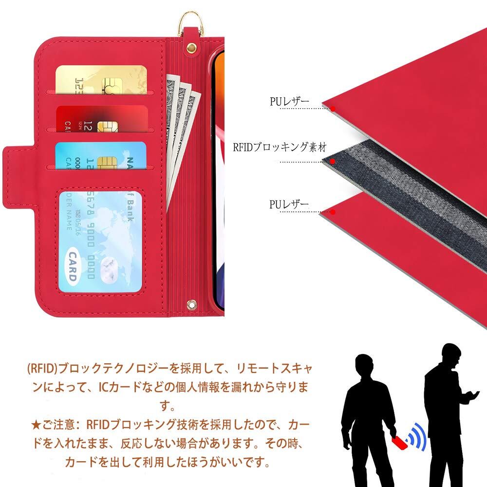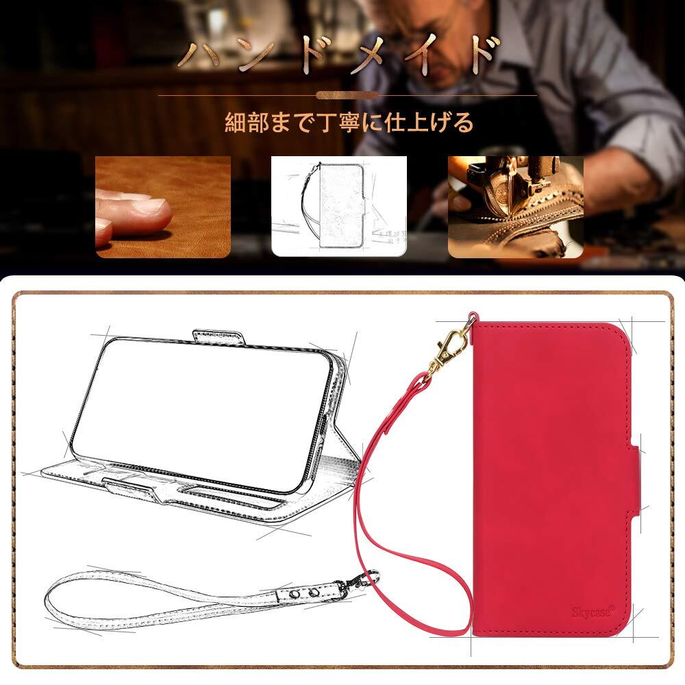 iPhone 12 ケース iPhone12 Pro ケース 手帳型 6.1インチ Skycase 5G スマホケース [Qi ワイヤレス充電対応] ハンドメイド 型押し 高級PUレザー 手帳型 カード収納 スタンド機能 サイドマグネット式 ストラップ付き 全面保護 耐汚れ 耐衝撃 2020年モデル アイフォン12 iphone12 ケース アイフォン12 プロ iphone12pro レッド