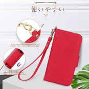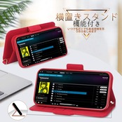 横置きスタンド機能が付いて、好きな角度で動画鑑賞や読書などを楽しめます。財布型ケースとして、内側には三つのカード入れとフリーポケットが付き、名刺や定期券など収納出来ます。