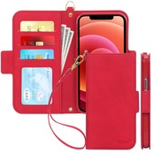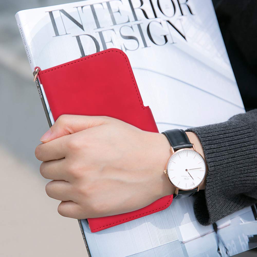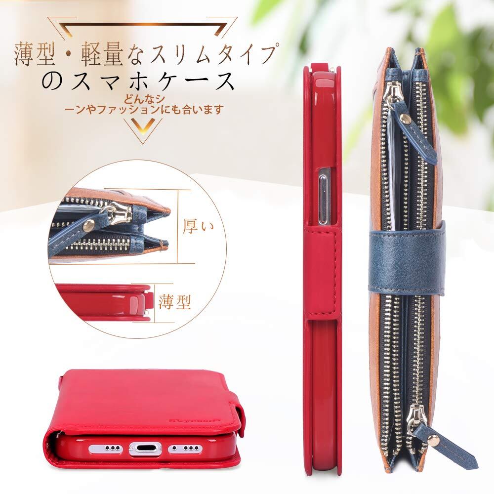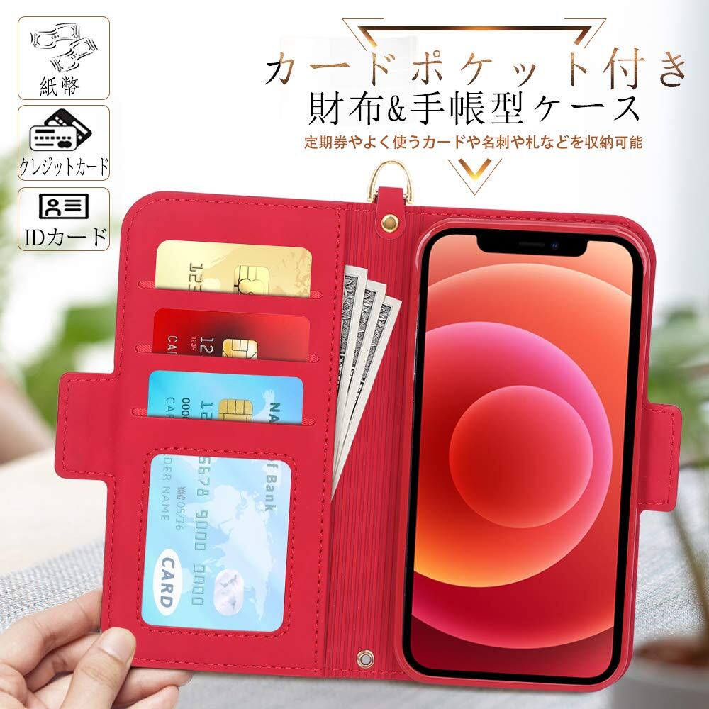 【新着商品】iPhone 12 ケース iPhone12 Pro ケース 手帳型 6.1インチ Skycase 5G スマホケース [Qi ワイヤレス充電対応] ハンドメイド 型押し 高級PUレザー 手帳型 カード収納 スタンド機能 サイドマグネット式 ストラップ付き 全面保護 耐汚れ 耐衝撃 2020年モデル アイフォン12 iphone12 ケース アイフォン12 プロ iphone12pro レッド