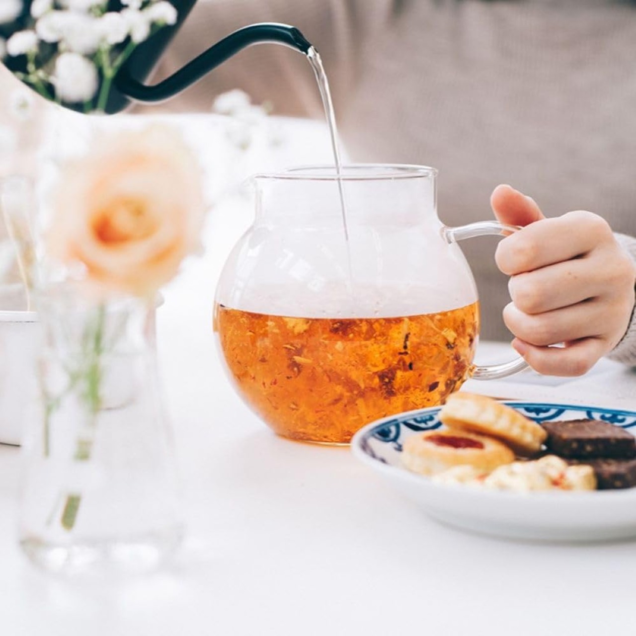 【耐熱ガラス製】 本体ガラスは日本製の耐熱ガラス。温め直したいときは、フタをしたまま電子レンジ加熱もOKです。ガラスボールの透明感は、茶葉が開く様子や飲み頃が分かります。