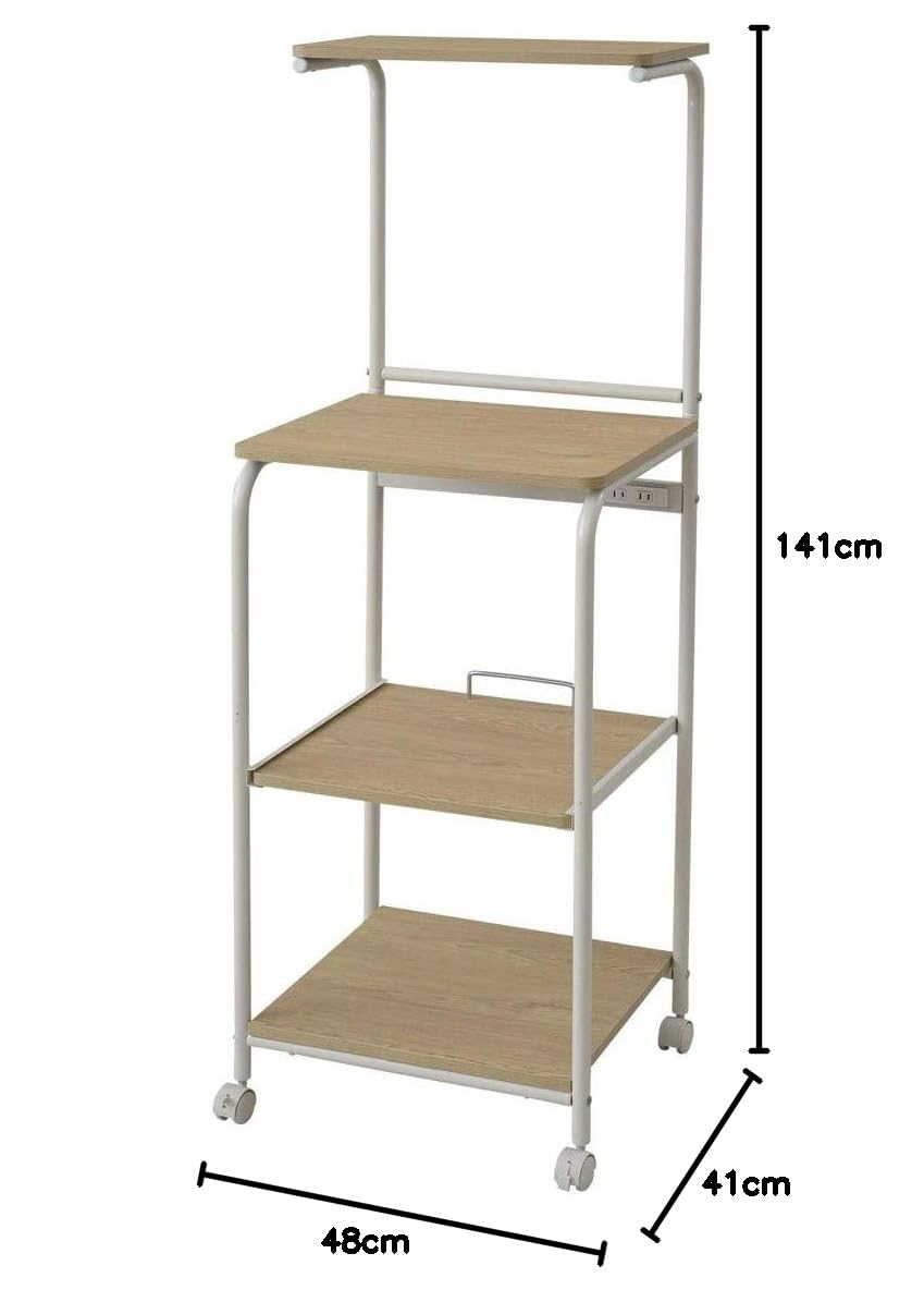 山善(YAMAZEN) レンジラック 幅48×奥行41×高さ141cm スライド棚 2口コンセント ストッパー付きキャスター レンジ台 ラック トースターラック 組立品 リアルウッド/オフホワイト GRW-48R(RW/OW)