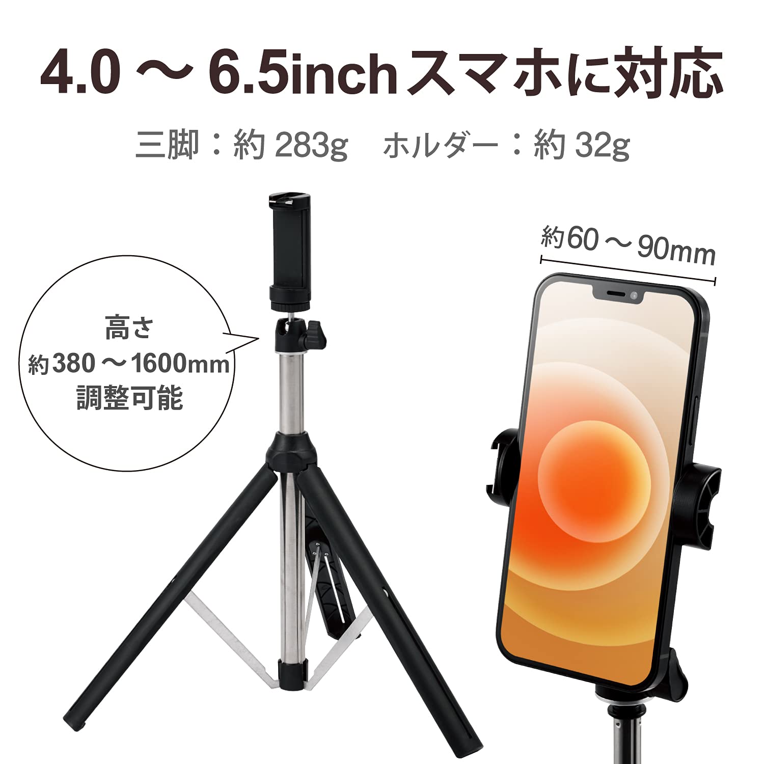 ■ 対応機種:4.0~6.5インチ 各種スマートフォン (ホルダー挟み幅)約60~90mm