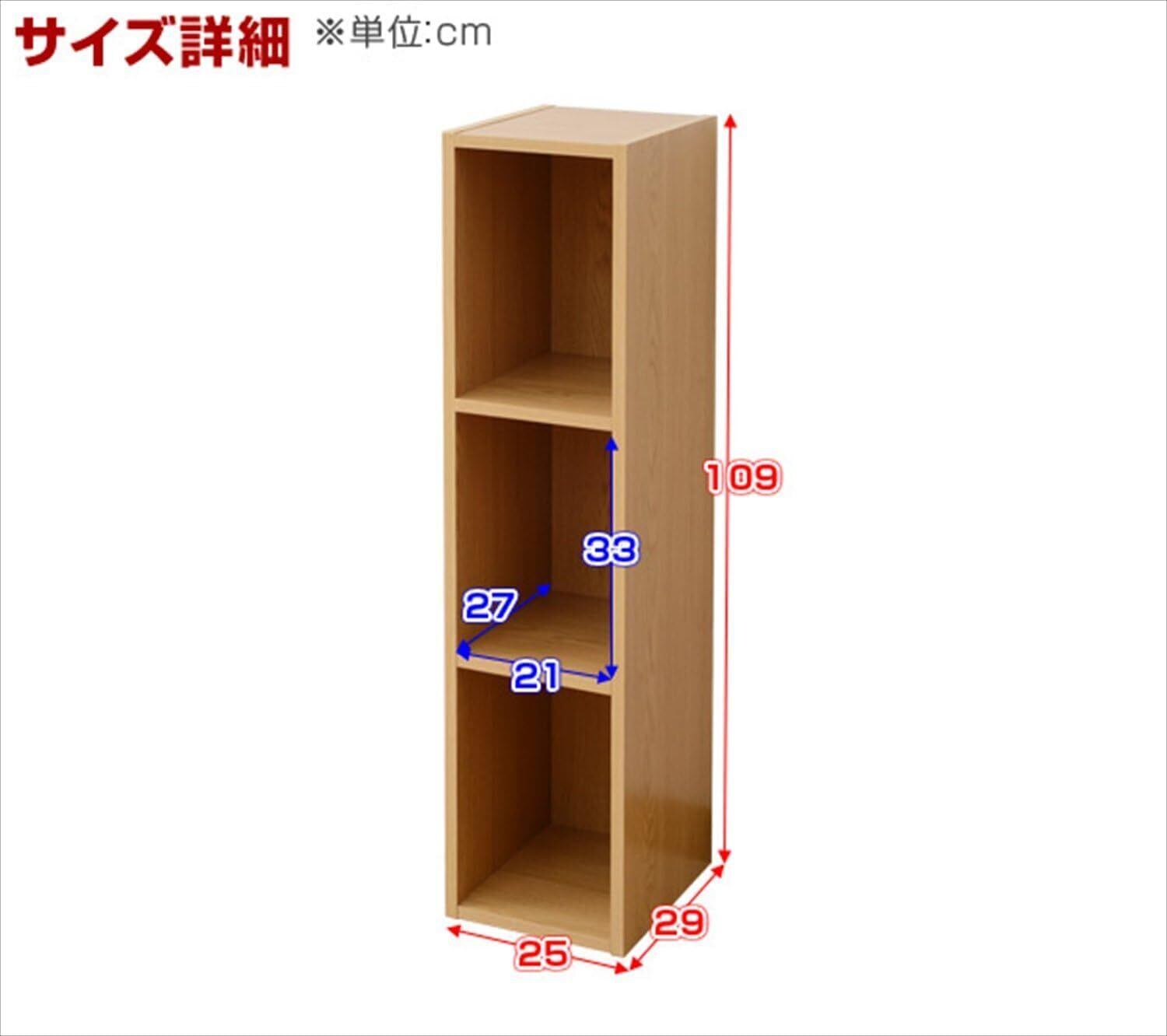 ●本体サイズ : 幅25×奥行29×高さ109cm●棚板有効内寸:幅21.5×奥行27.5×高さ33.5cm●タテ置き時耐荷重:天板、棚板15kg●ヨコ置き時耐荷重:天板40kg●材質 : プリント紙化粧繊維板●お客様組立●東証プライム(株)山善で扱うすべての山善商品は、自社もしくは第三者機関において、JIS規格に基づいた品質試験を行っております。