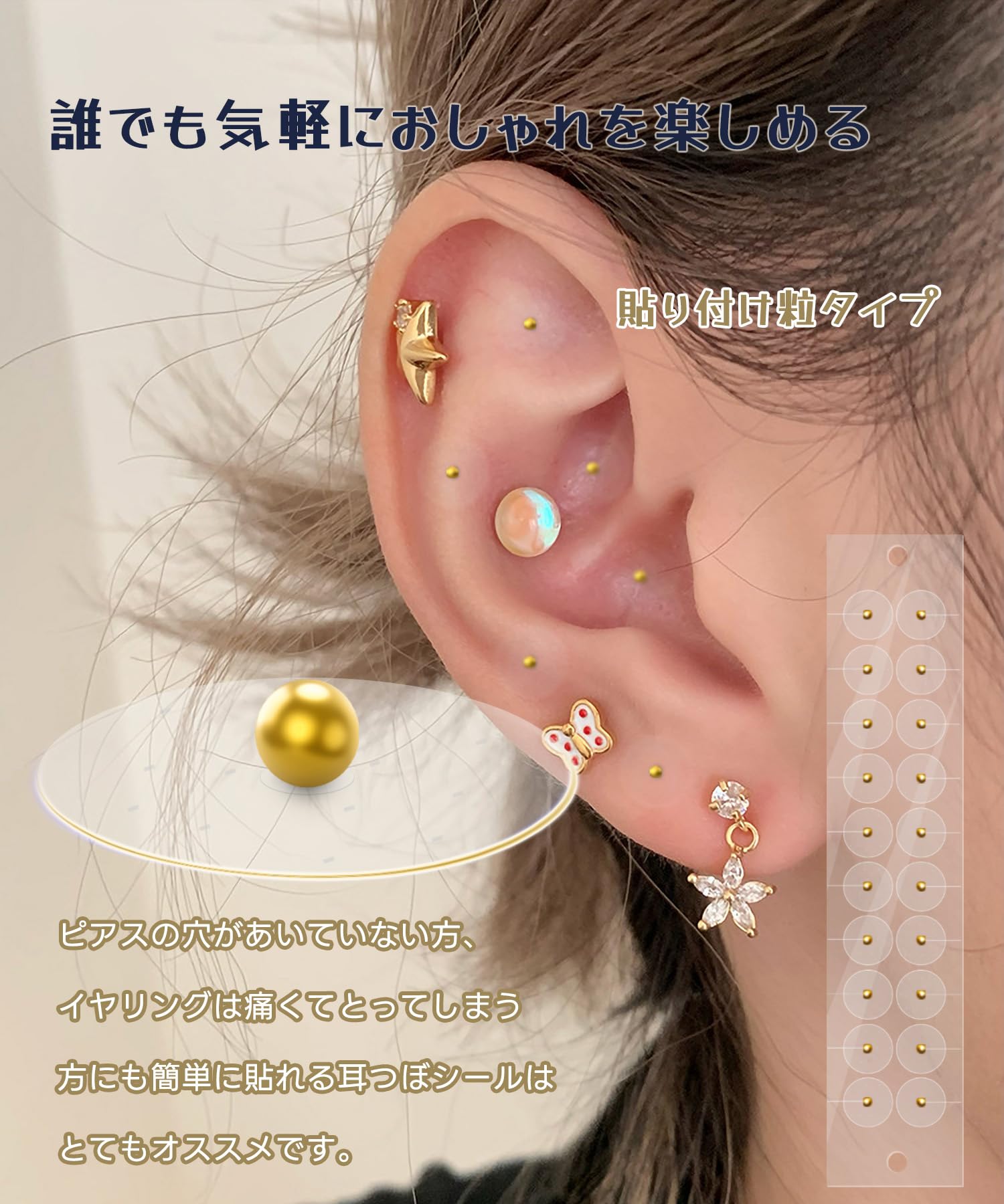【耳つぼジュエリー】針を使わず、貼るだけで心地よい刺激を与え、リラックスした気分へと導きます