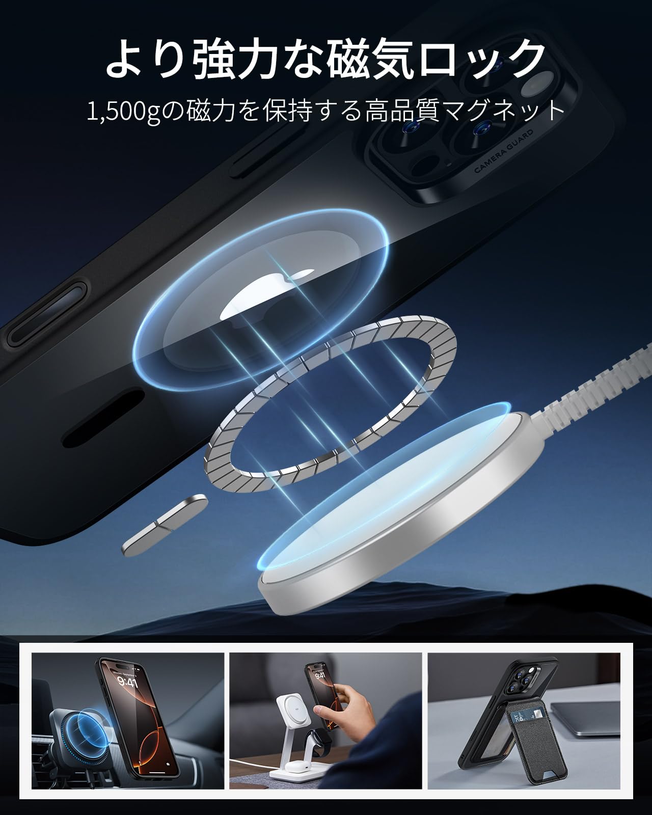 【ズレない・外れない!最強マグネット〈1,500gの保持力〉】 業界トップクラスの強力磁力(1,500gの保持力)を内蔵した いphone16promaxケースです!MagSafeワイヤレス充電器やアクセサリーが瞬時に「ピタッ」と吸着するため、満員電車や急いでいる時でも位置調整の手間が不要です。充電中のずれ落ちやアクセサリーの外れが心配ない設計で、移動中やアウトドアでの利便性が格段に向上します