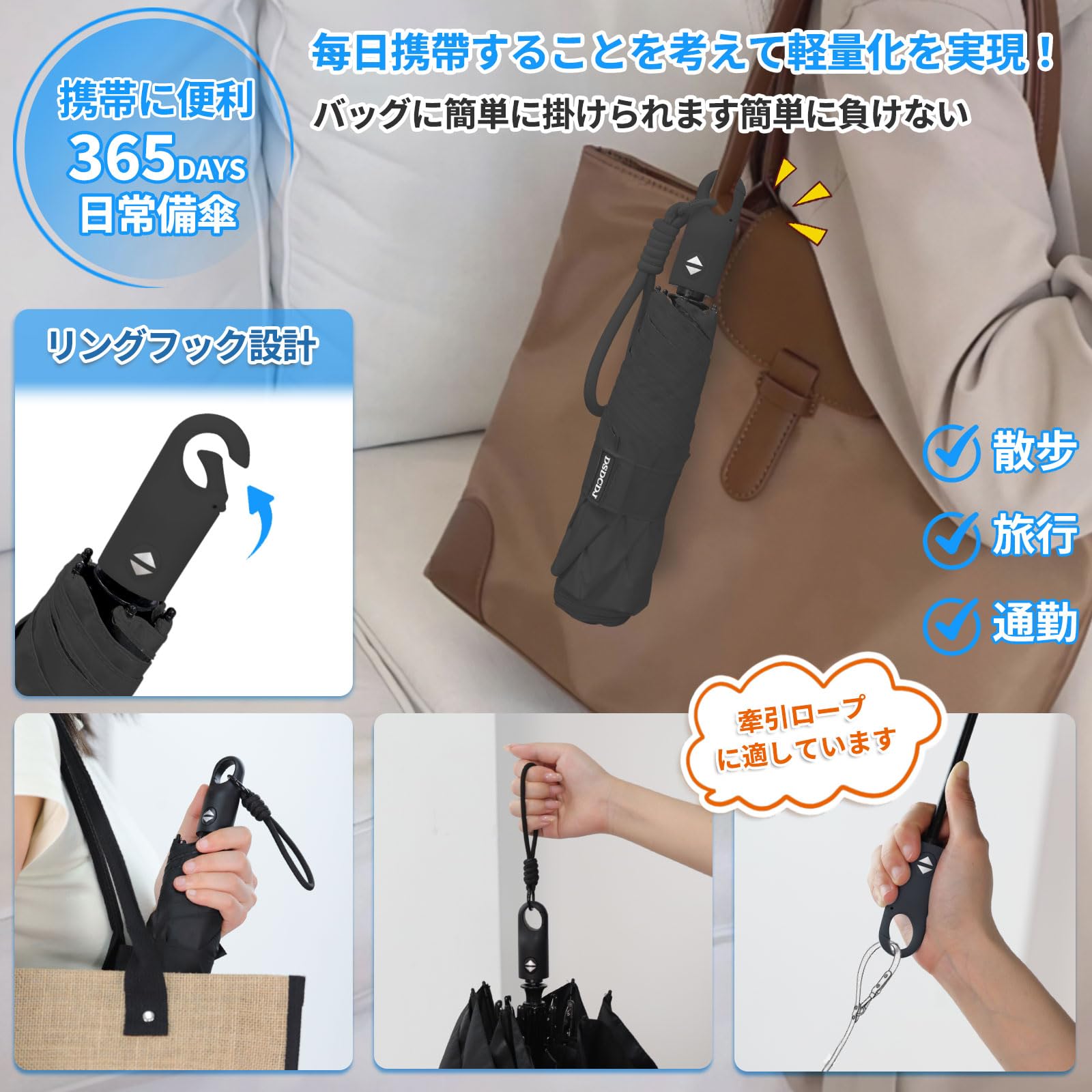 【ワンタッチ自動開閉傘&簡単に片手操作】ワンタッチ操作の自動開閉傘を採用しています。片手で簡単に操作できるため、荷物やスマートフォンを持っている場合でも簡単に傘を開閉できます。さまざまなシーンで使いやすさを実感できます。傘の開閉ボタンは厳格な品質テストを経ており、毎回の操作が正確で、優れた耐久性を備えています。