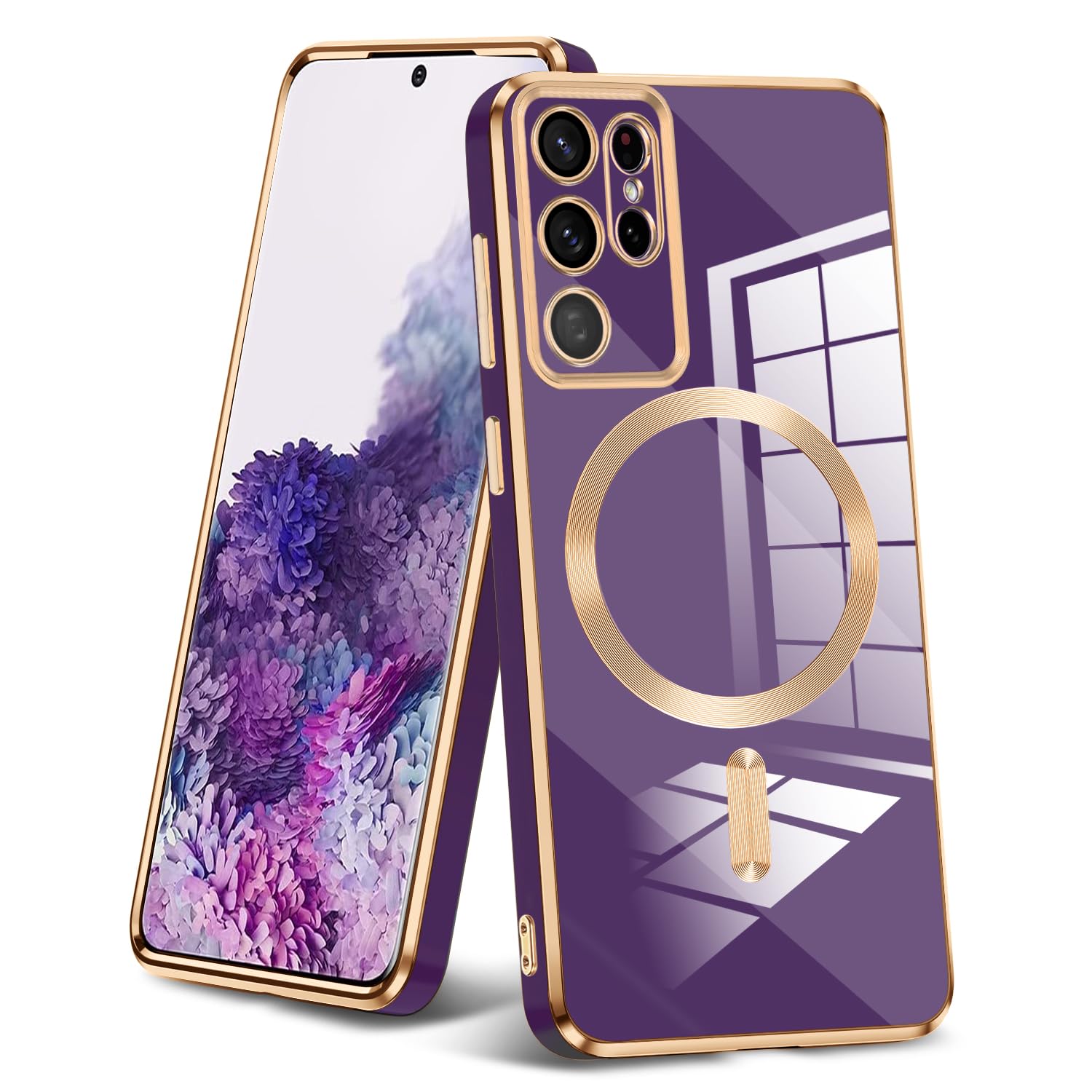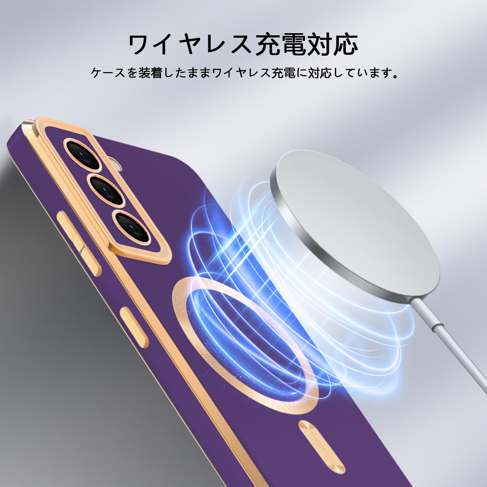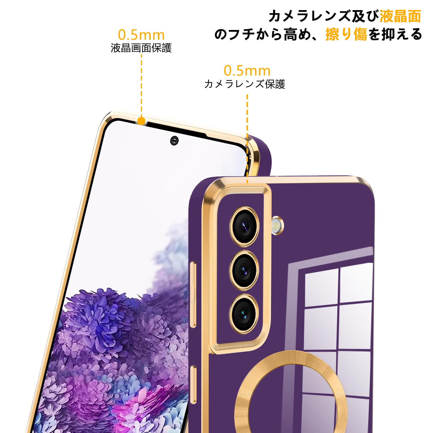 Galaxy S23 Ultra 用 ケース 耐衝撃 TPU ケース レンズ保護 メッキ加工 マグネット搭載ケース ソフト ワイヤレス充電 ストラップホール付き 黄変なし 薄型 軽量 ギャラクシーS23 Ultra 用 カバー メッキ枠 人気 おしゃれ パープル JP6-20