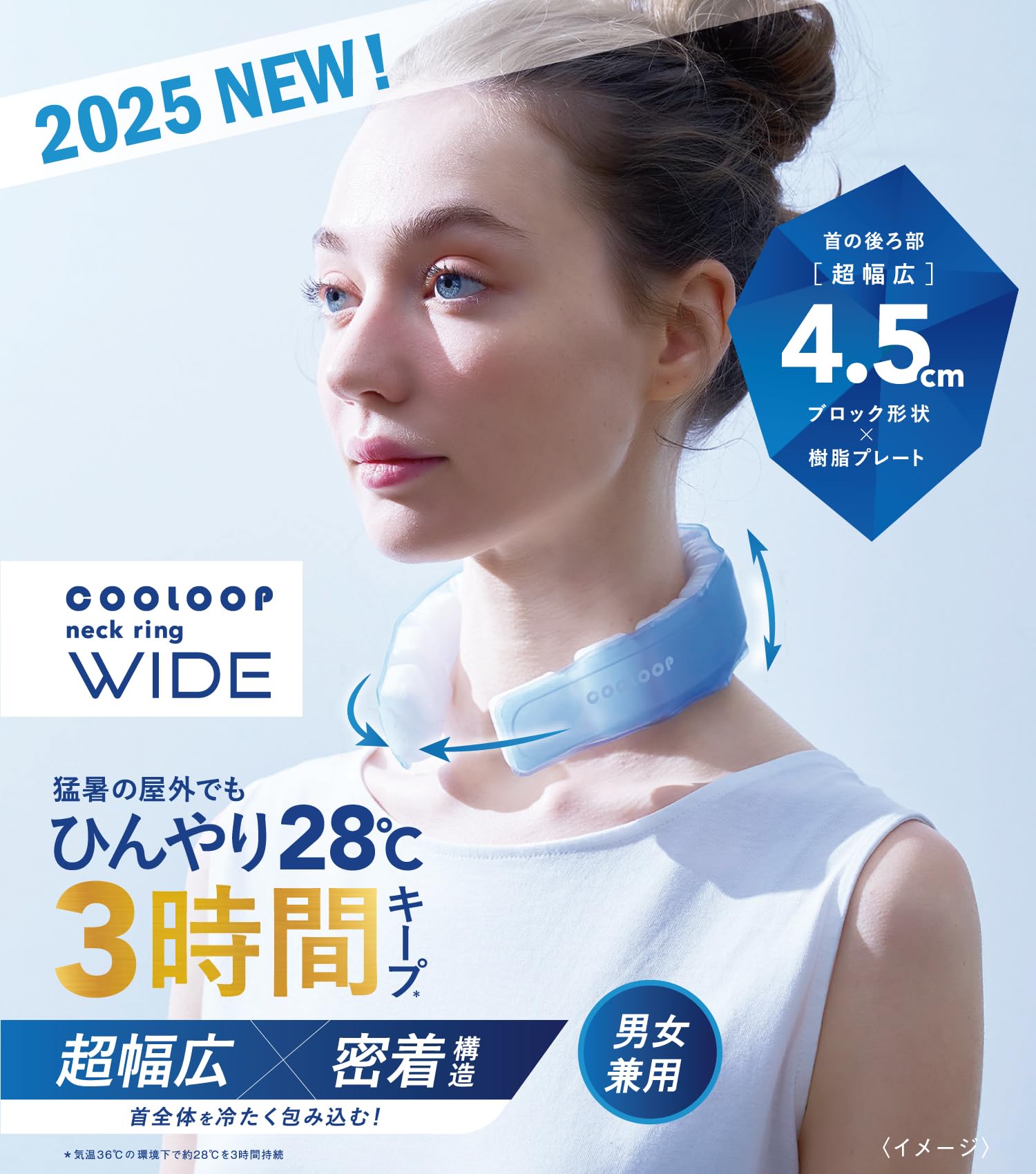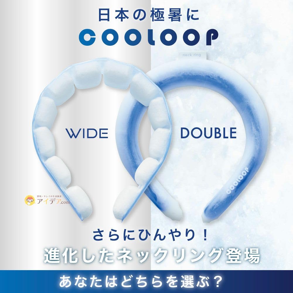 「COOLOOP」ネックリングに、ワイドタイプが新登場!首の接触面がワイドになり、首全体を包み込んで、より冷たさを感じられます。
