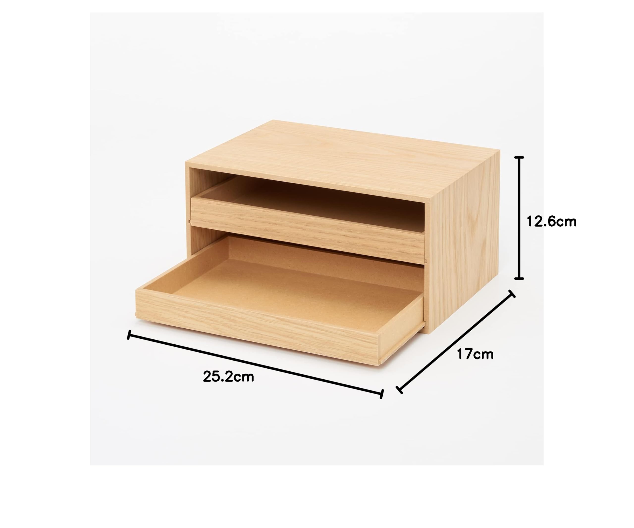 無印良品 木製トレー収納2段引出 約幅25.2x奥行17x高さ12.6cm 44310229
