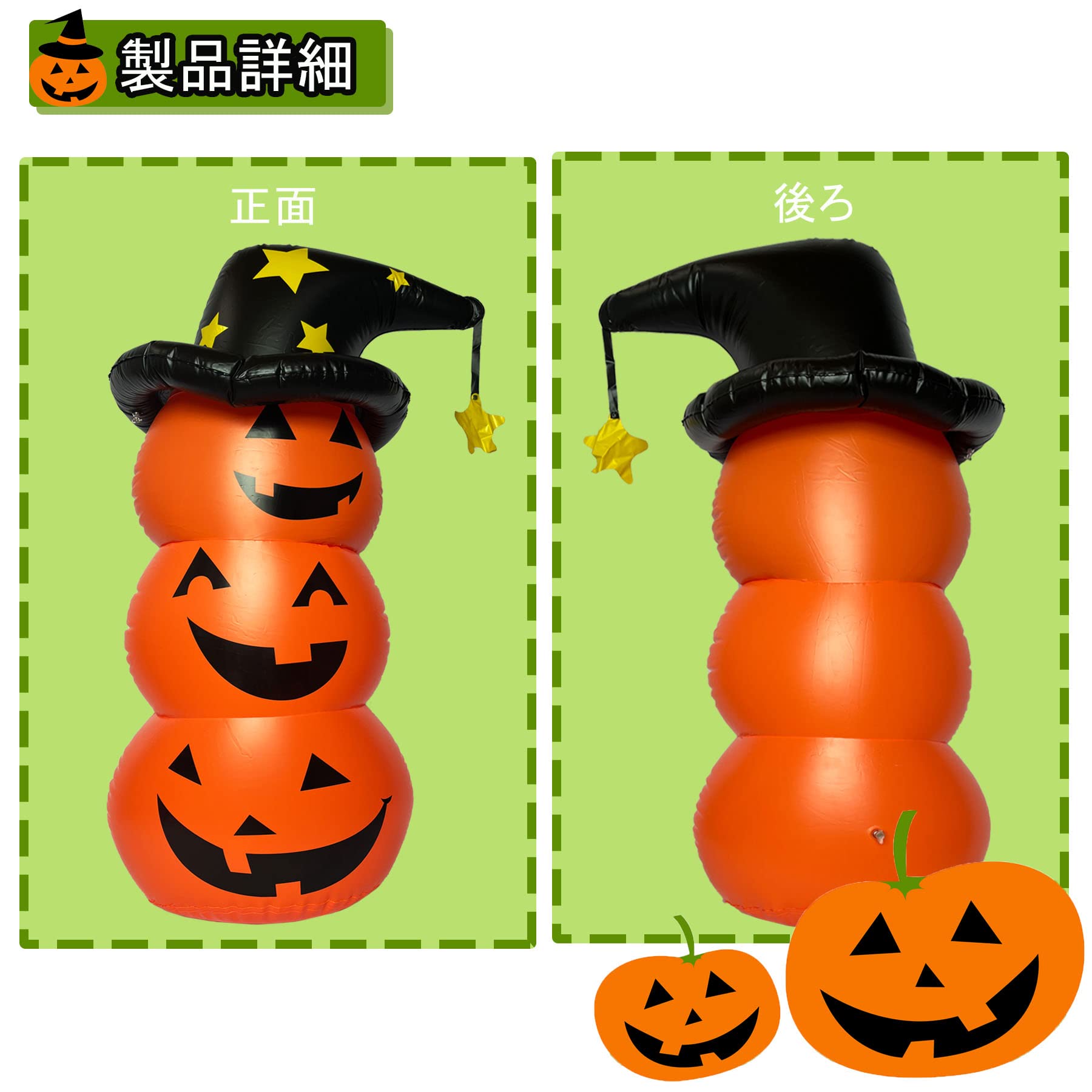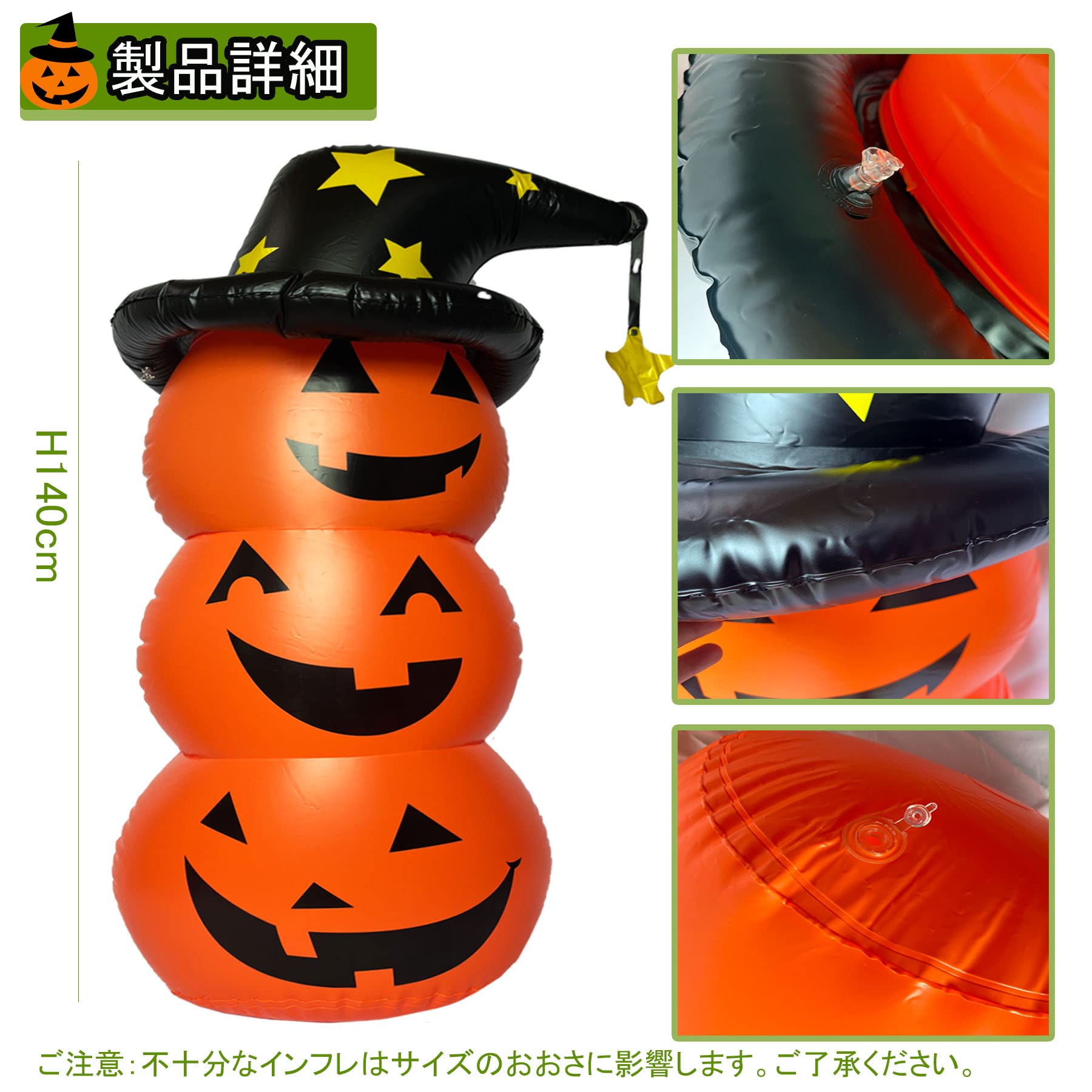 ■使い方:カボチャはバルーンタイプなので空気を入れる必要です。帽子と背中の下のノズルは空気を入れるです。もっとも下のノズルは水を入れてる必要です。また、先に重しを入れてから膨らませてください。先に本体に空気を入れると、中に水も入れられないのでご注意ください。*ご注意:1、過度に膨らませないでください、2、長期間の暴露にさらさないでください。</br>