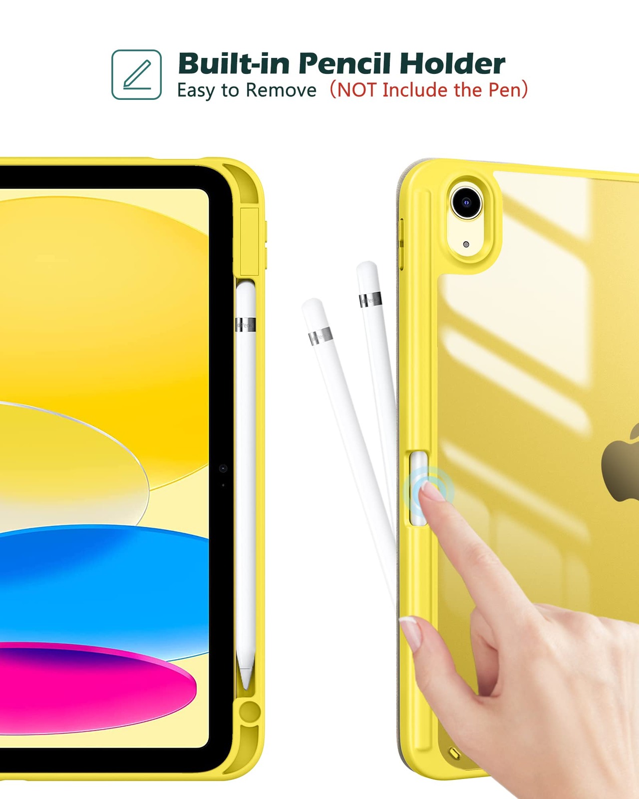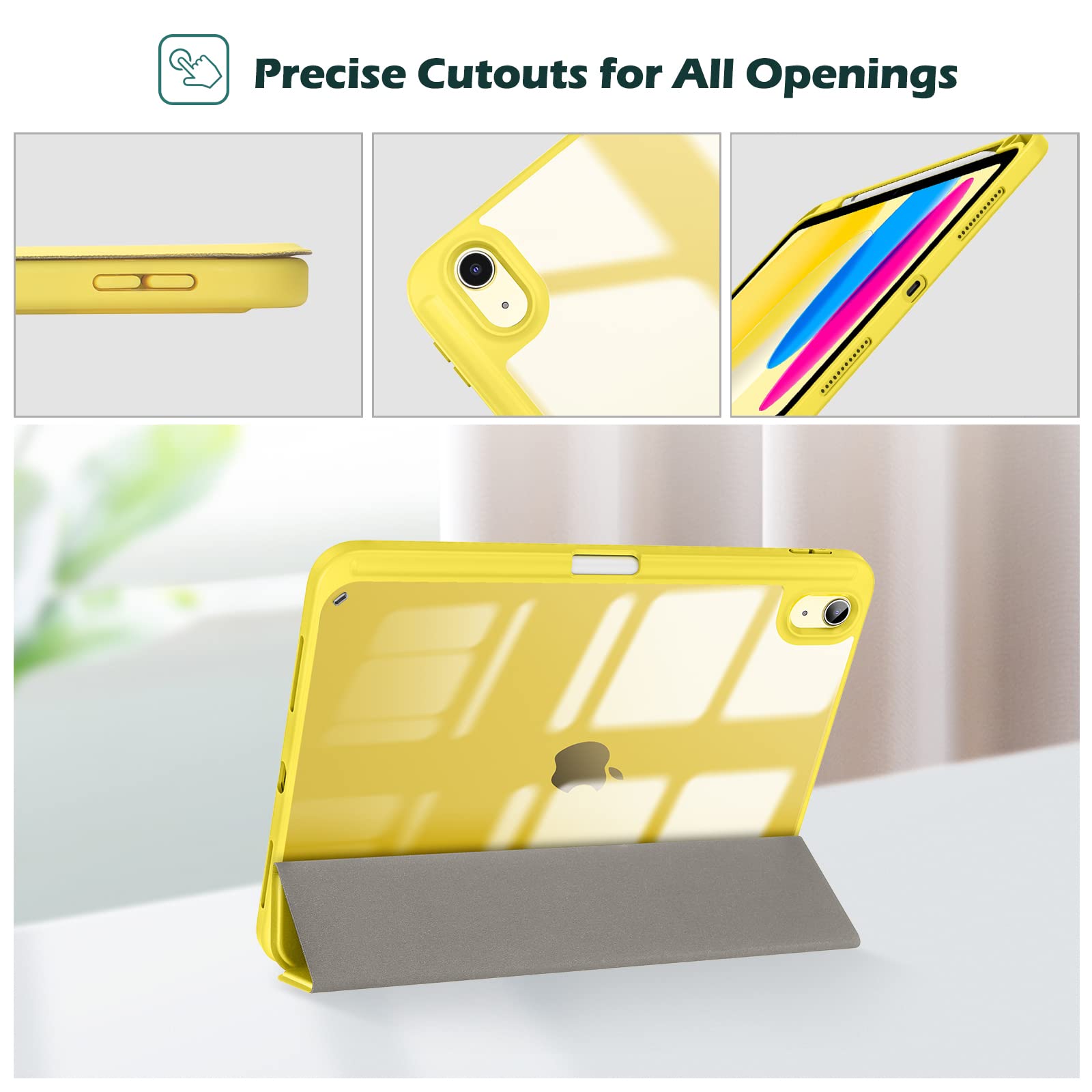 ProCase iPad 11世代/10世代 ケース iPad(A16)11インチ 2025/10.9インチ 2022通用 A2696 A2757 A2777 ペン収納 耐衝撃 三つ折り スタンド スマートカバー(イェロー)