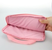 全面には大きなポケット、上部には持ち運び、取り出しに便利な取っ手が付いています。 内側にはペンホルダーもあり、使いやすい仕様となっています。 タブレット端末に入れた状態でランドセルにしまえるような大きさになっています。