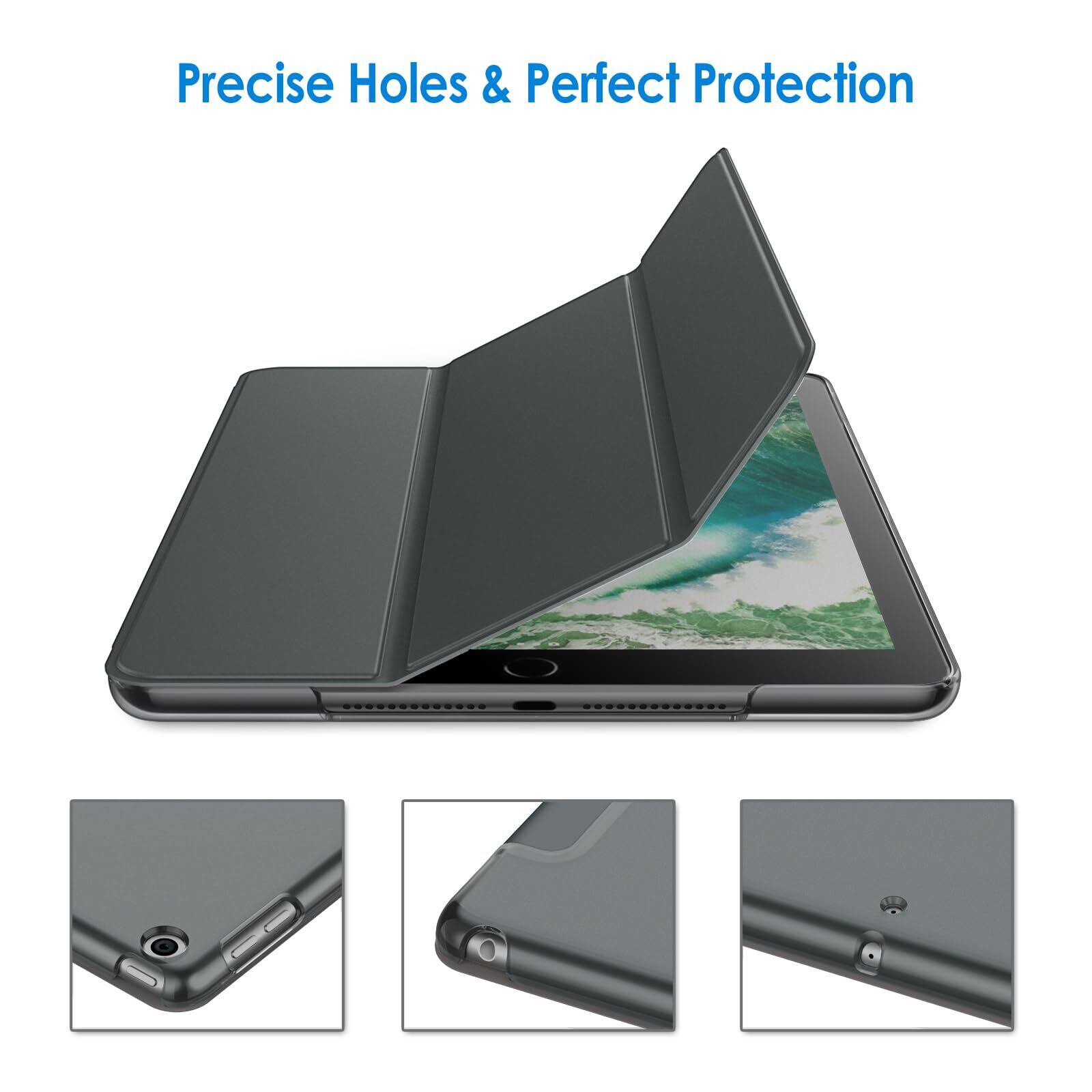 JETech iPad 9.7インチ (2018/2017,第6/5世代用) ケース PUレザー 三つ折スタンド オートスリープ機能 (ダークグレー)