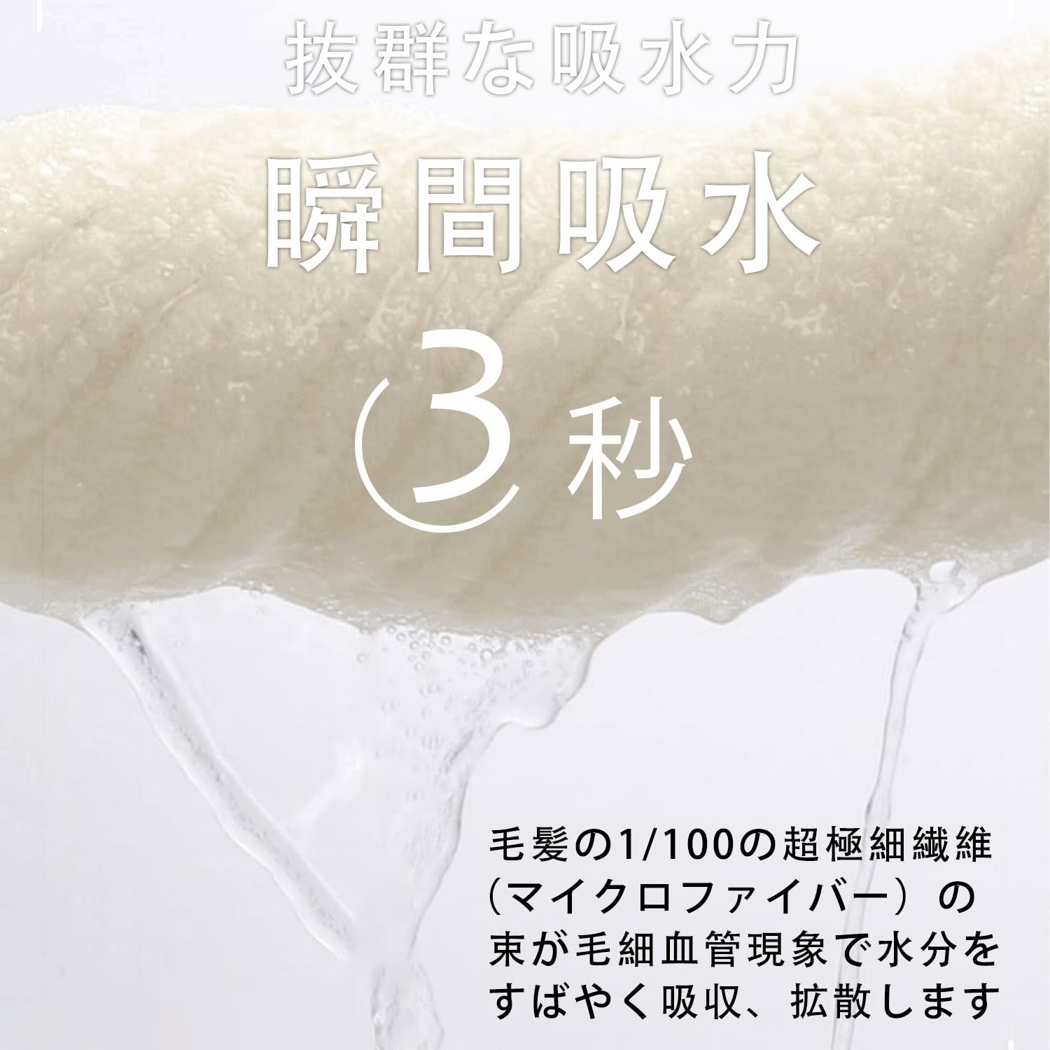【吸水力抜群】毛髪の1/100の超極細繊維(マイクロファイバー)で、吸水力が抜群です。体はゴシゴシではなく、水分をぐんぐんに吸収。いつでもサラッとした使い心地です。