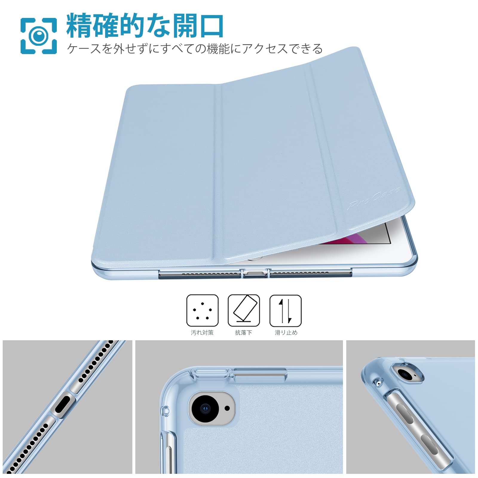 【数量限定】ProCase iPad 9.7 ケース、iPad 6世代 2018/ 5世代 2017 iPad Air 2 1 保護カバー 3つ折り スマートケース TPUバックカバー スタンド機能 - スカイブルー
