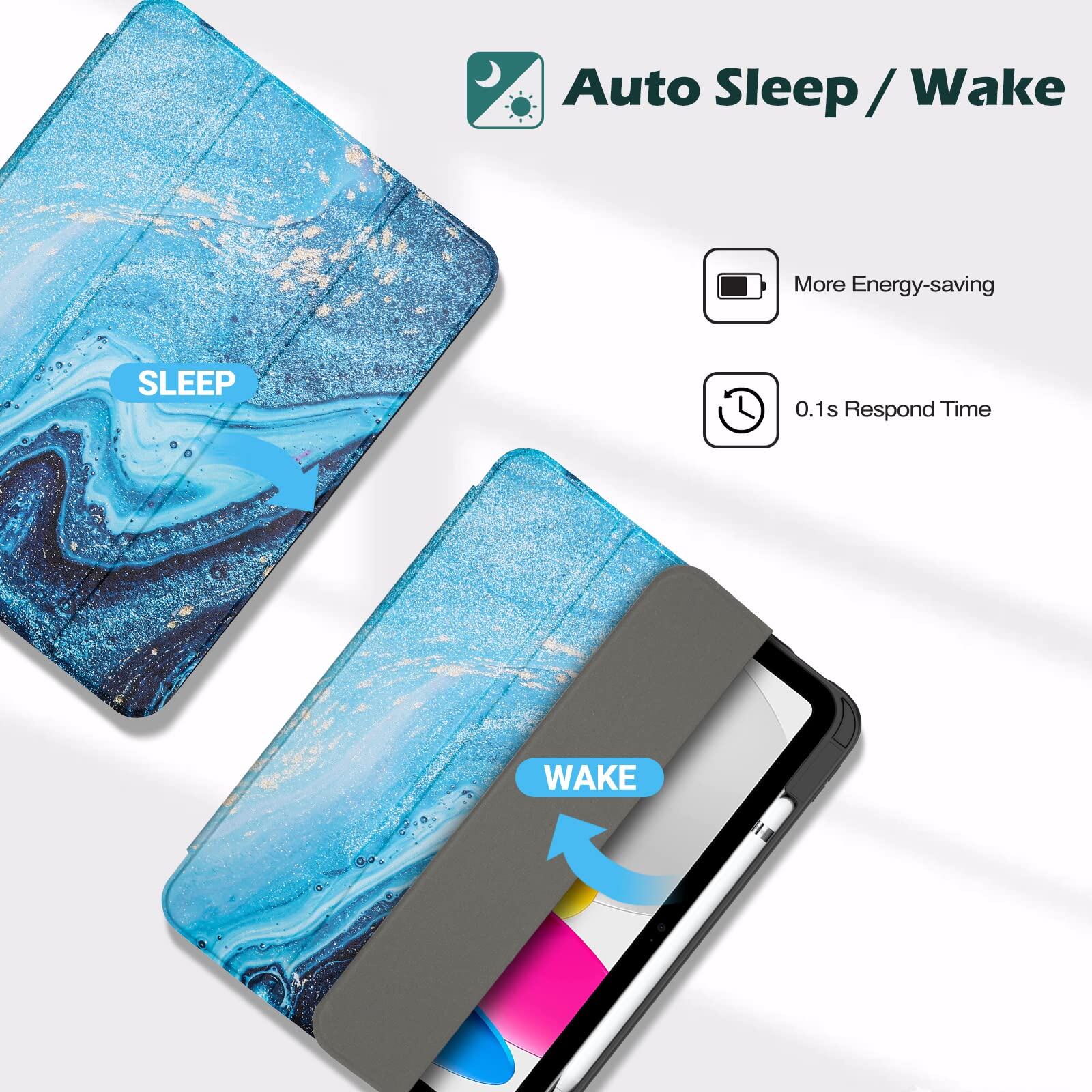 【2022最新】ProCase iPad 11世代/10世代 ケース iPad(A16)11インチ 2025/10.9インチ 2022通用 A2696 A2757 A2777 ペン収納 耐衝撃 三つ折り スタンド スマートカバー(オーシャンブルー)