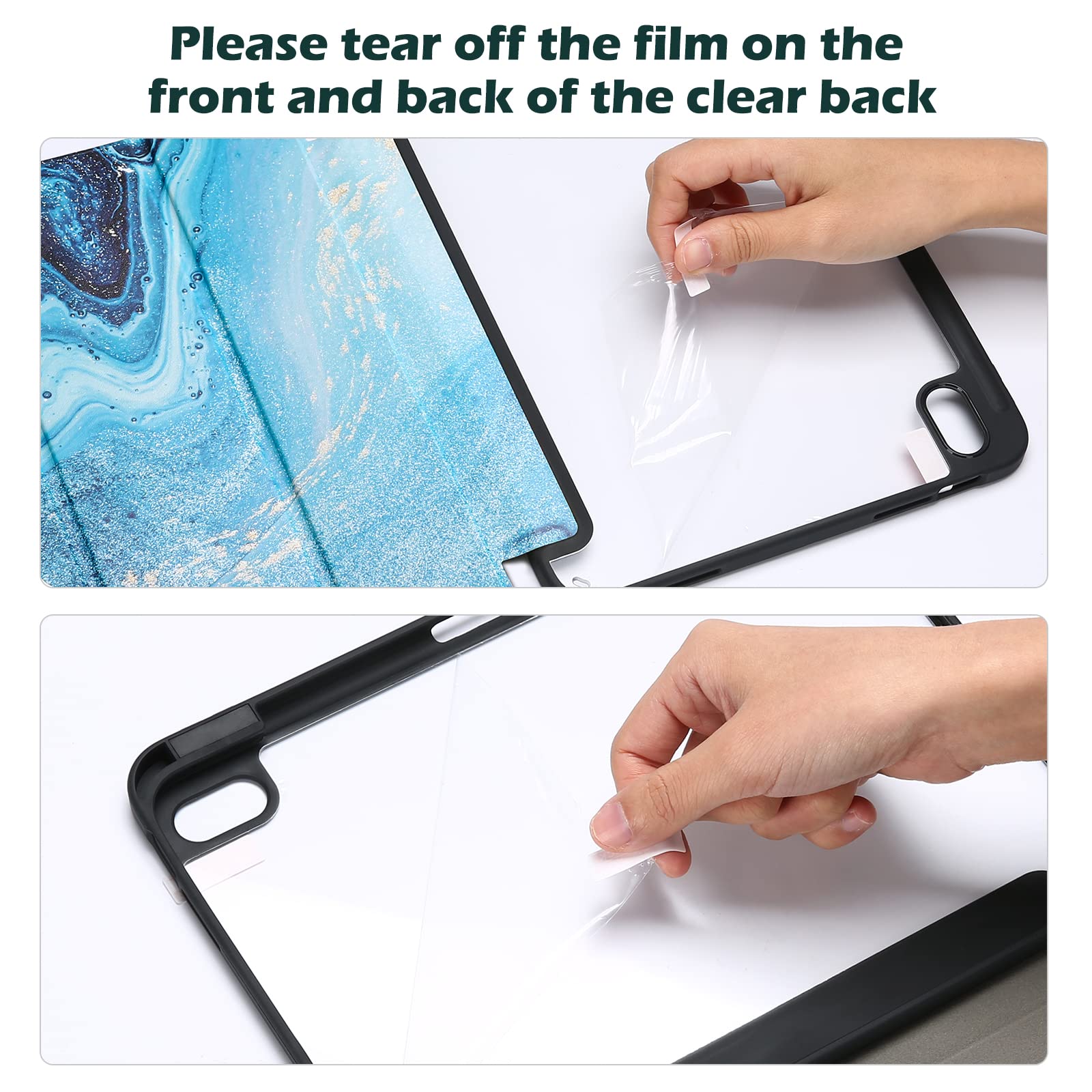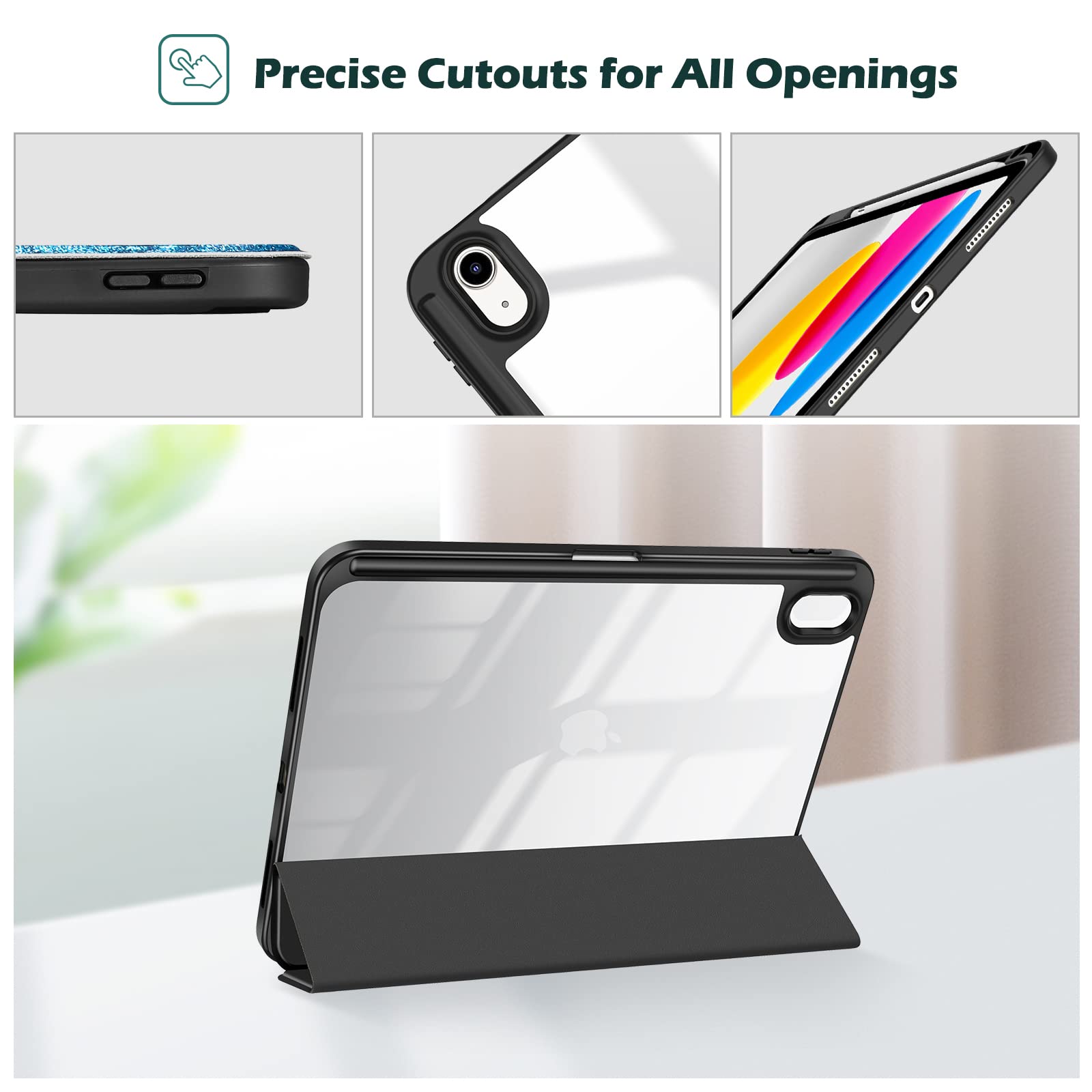透明でつや消しのPCバックカバーはアイコンを表示し、iPadを衝撃、指紋、引っかき傷から保護します。内蔵したマグネットにより、オートスリープ/ウェイクに対応します。
