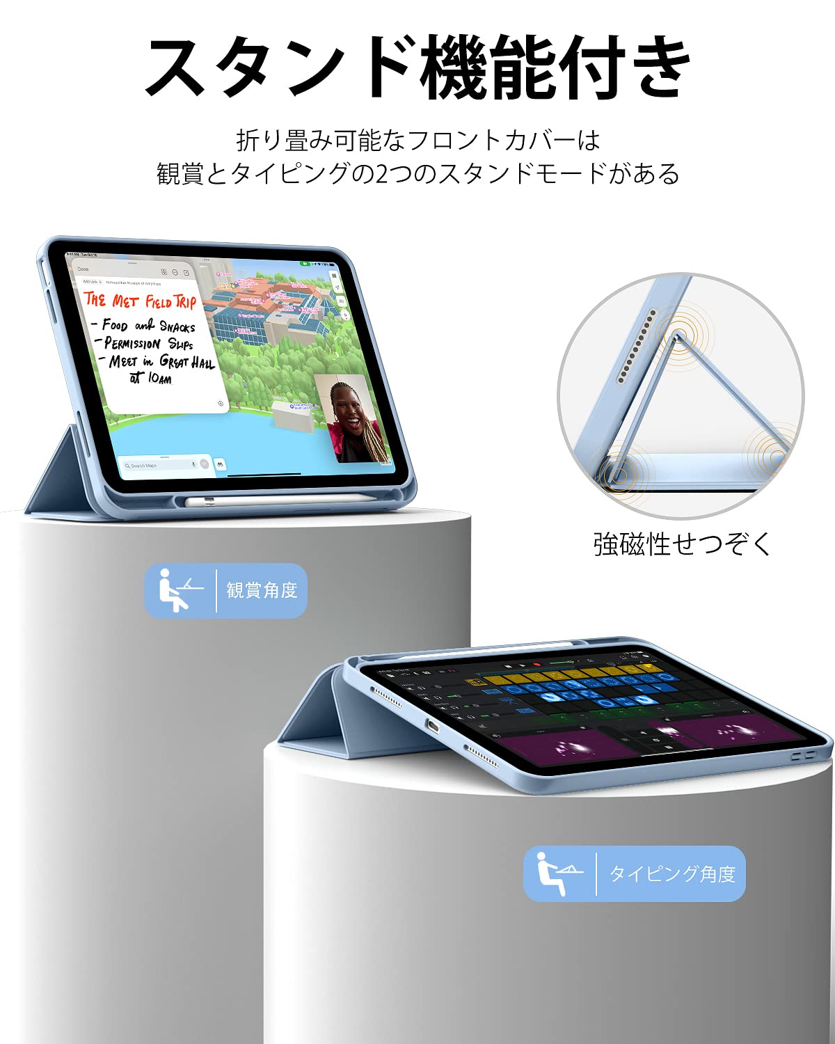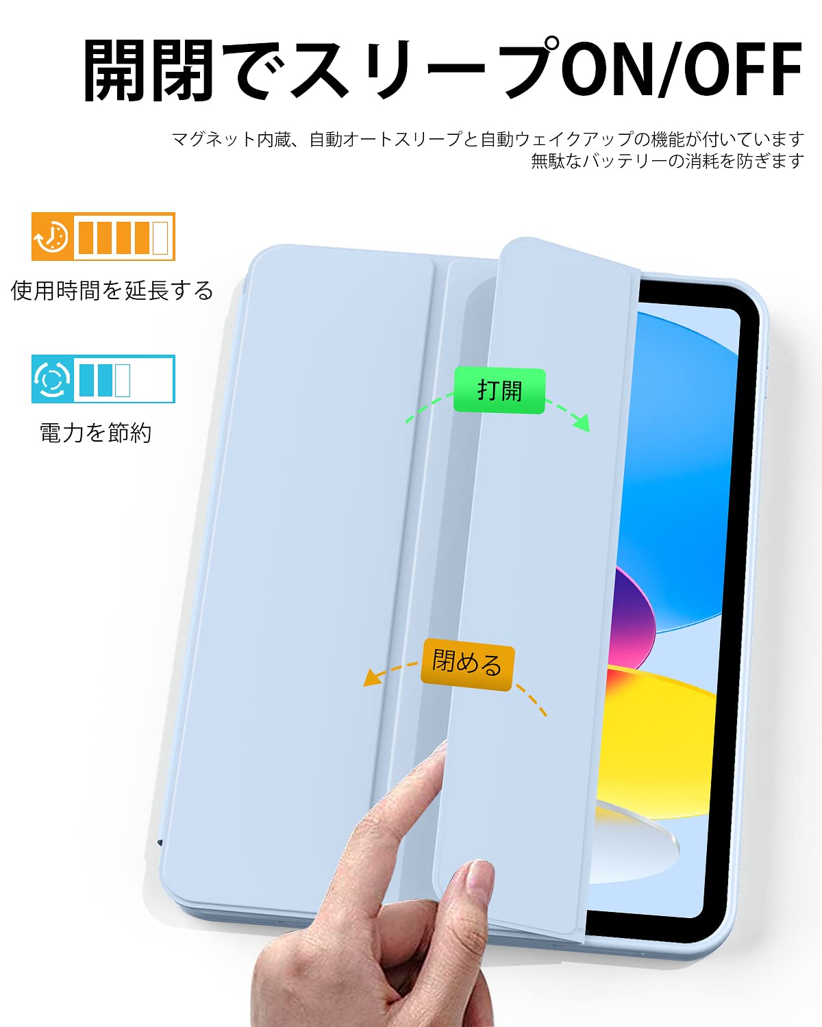 【対応機種】 iPad 11世代 (A16) 11インチ 2025、iPad 第10世代 10.9インチ 2022(モデル番号:A2696/A2757/A2777) 専用スマートケース。(ご注意:iPadの他のモデルには対応していません、ご注文の際に、 お手元機種の背面にあるモデル番号を確認をお願い致します。)