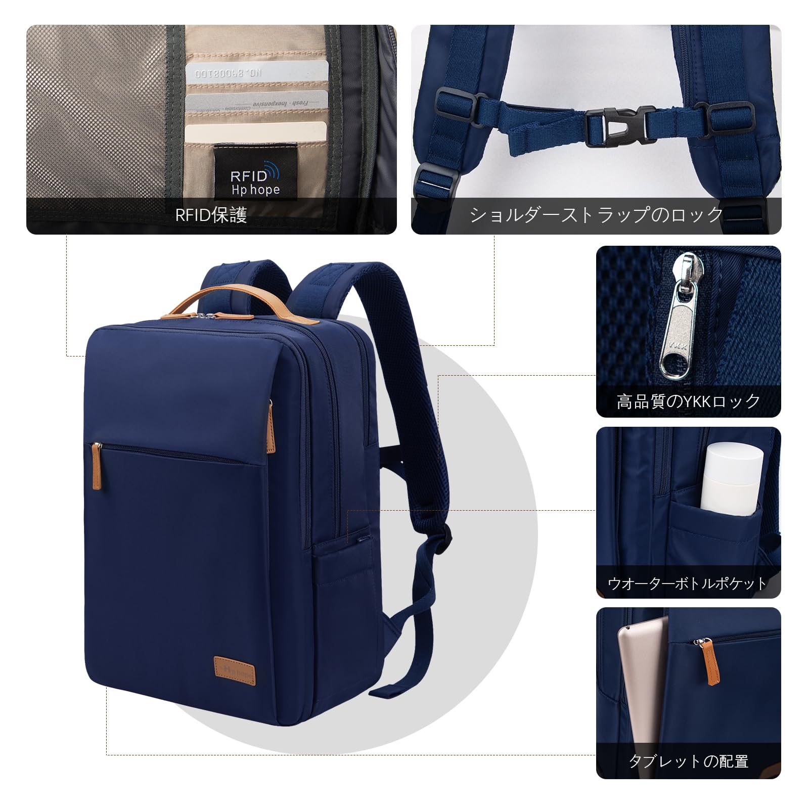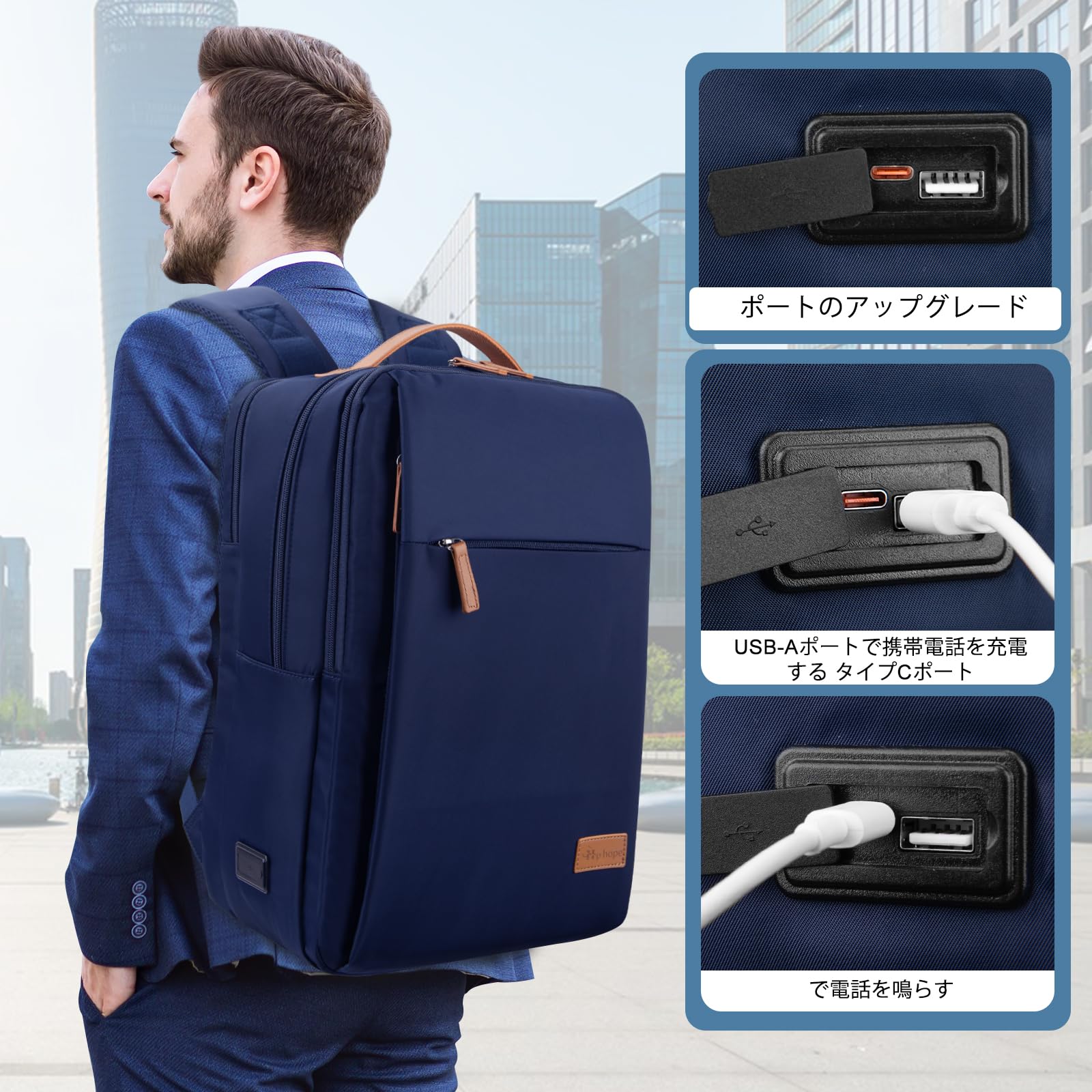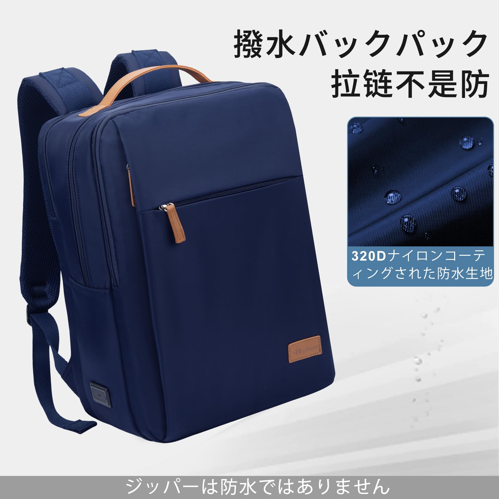 [Hp hope] ビジネスリュック 防水 大容量 軽量 男女兼用 PC バッグ USB充電ポート付き ファッションリュック 耐衝撃 通勤 通学 旅行 サイクリングに最適 15.6インチ