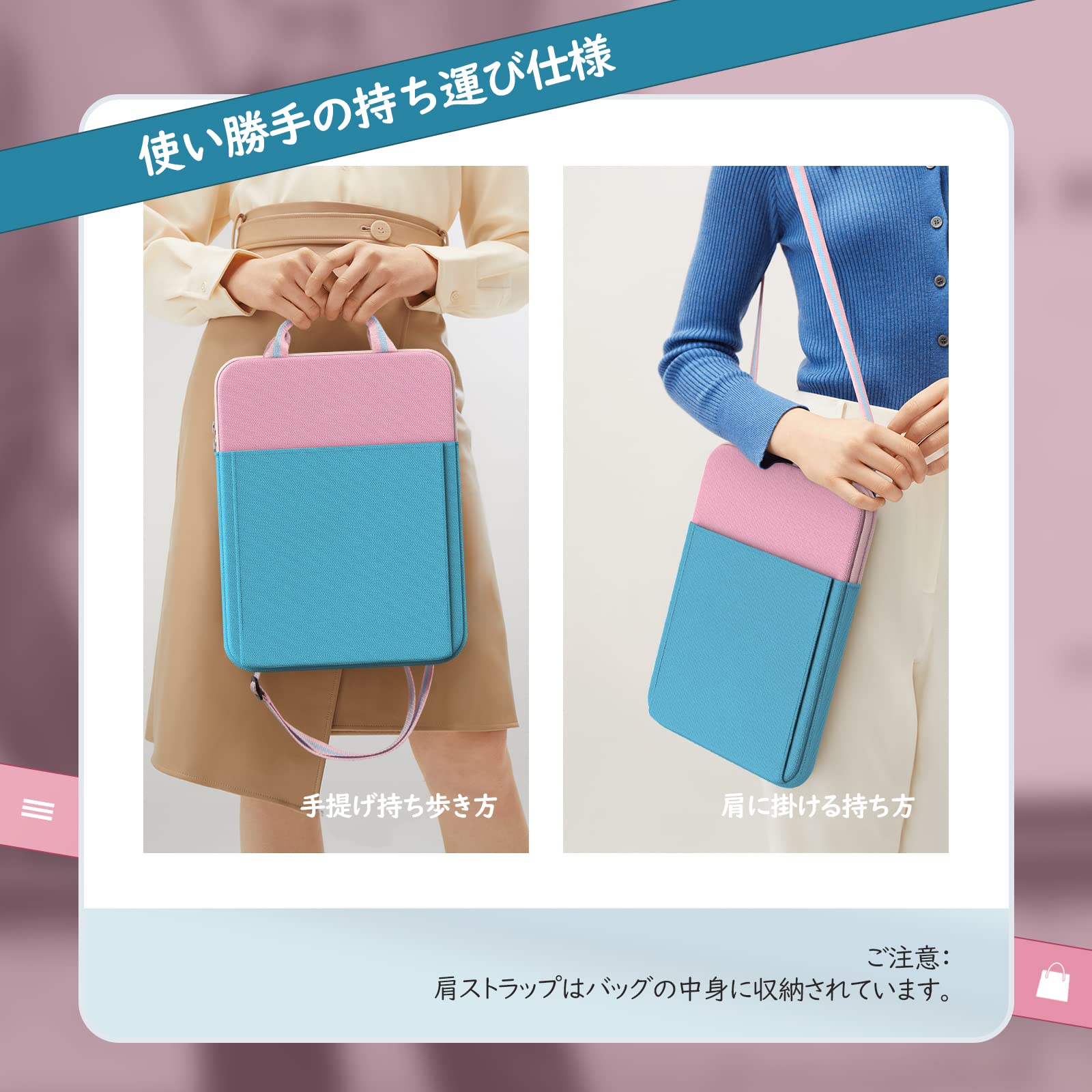 【在庫処分】タブレットケース 小学生 ATiC タブレットバッグ ランドセル 11.6インチまで対応 PC収納 クロームブックケース ポリウレタン製 大容量収納 手提げバンド/肩ひも付き 全面保護 iPad 第11世代/iPad Air/Pro 11インチ/MacBook Air 11.6in/iPad 第10世代/Air5/4/10.2/mini7/SurfaceGo3/HPなど対応 Pink&Blue