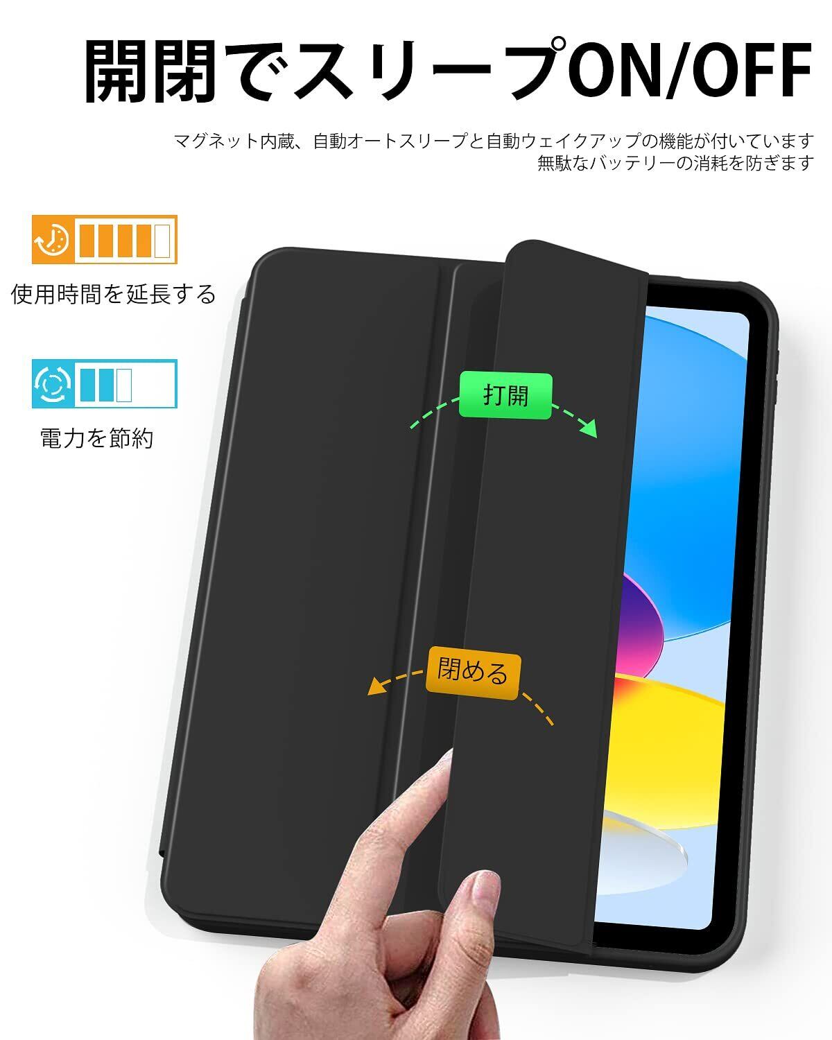 【対応機種】 iPad 11世代 (A16) 11インチ 2025、iPad 第10世代 10.9インチ 2022(モデル番号:A2696/A2757/A2777) 専用スマートケース。(ご注意:iPadの他のモデルには対応していません、ご注文の際に、 お手元機種の背面にあるモデル番号を確認をお願い致します。)