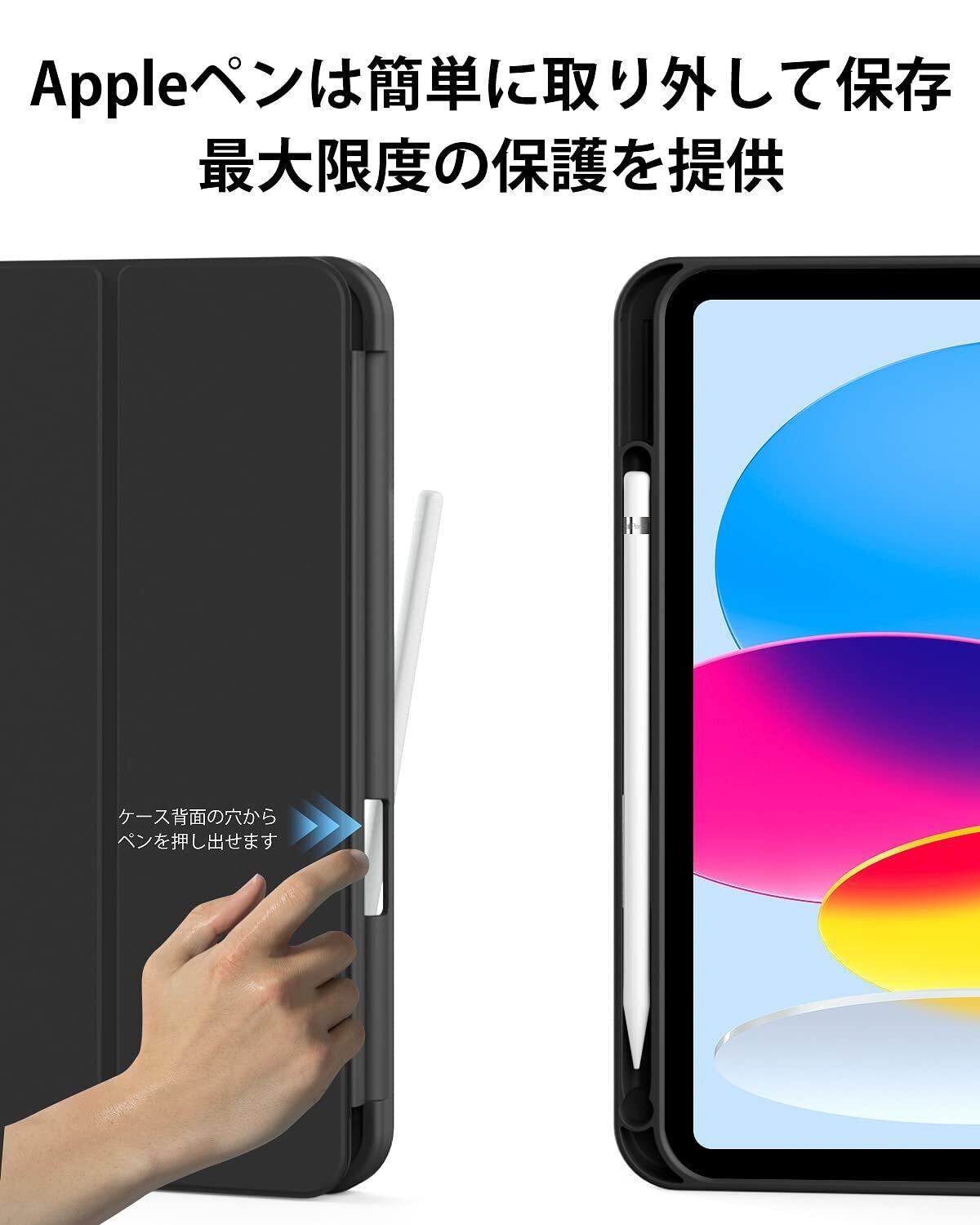 【便利なペンホルダー】Apple Pencilペン収納、便利なペンホルダーが付き、収納や持ち運びに便利です、ペンシル取り出し用の穴があるので簡単にペンを取り出す事ができます。いつでもどこでもiPadを快適に使えます。 アップルペンシル と 付属品 の紛失を防止して、安心して持ち運ぶ事ができます。