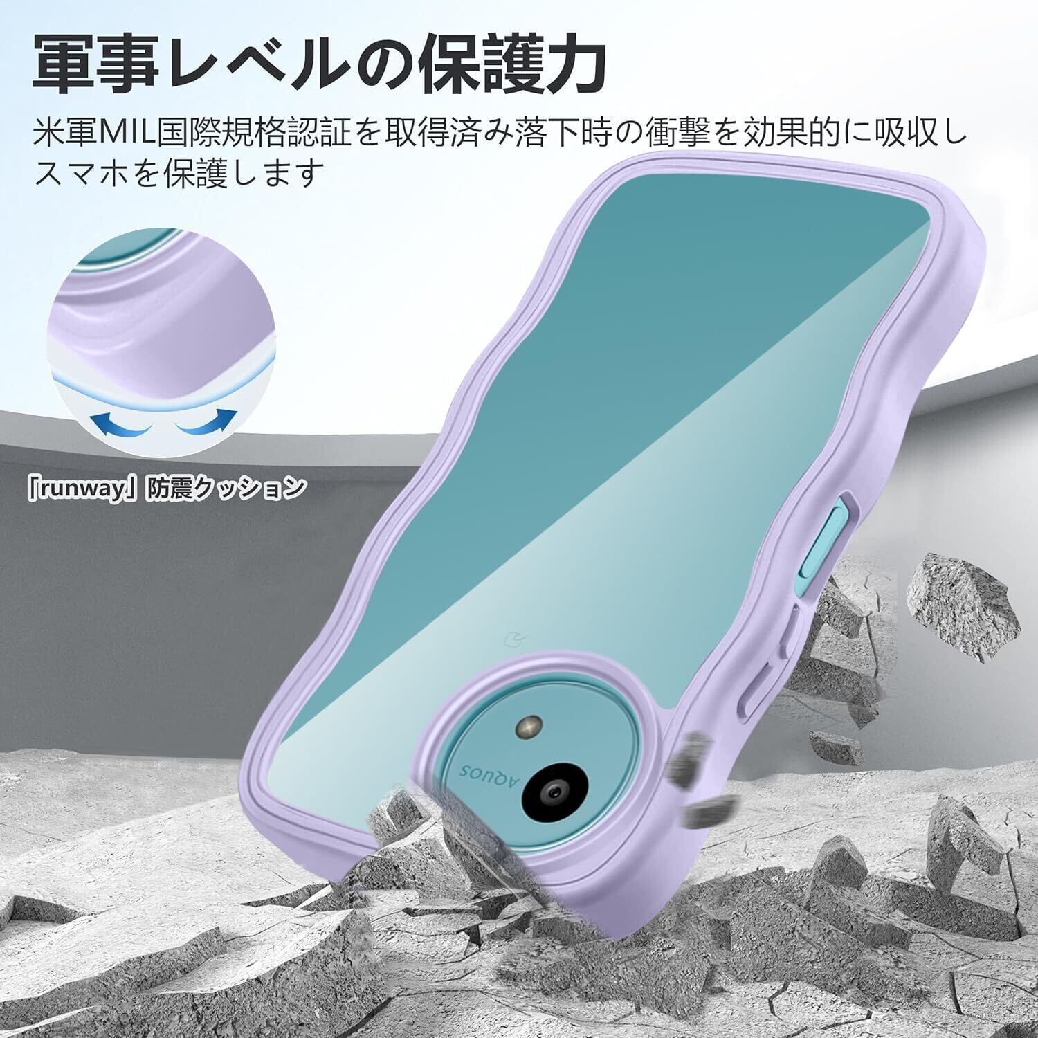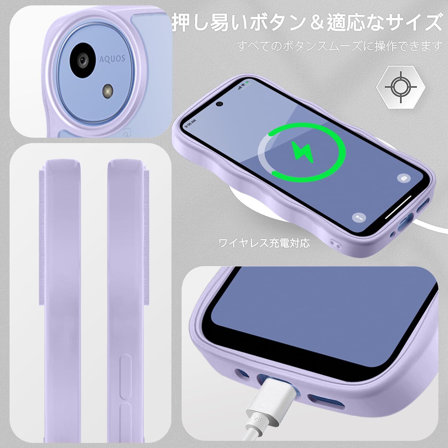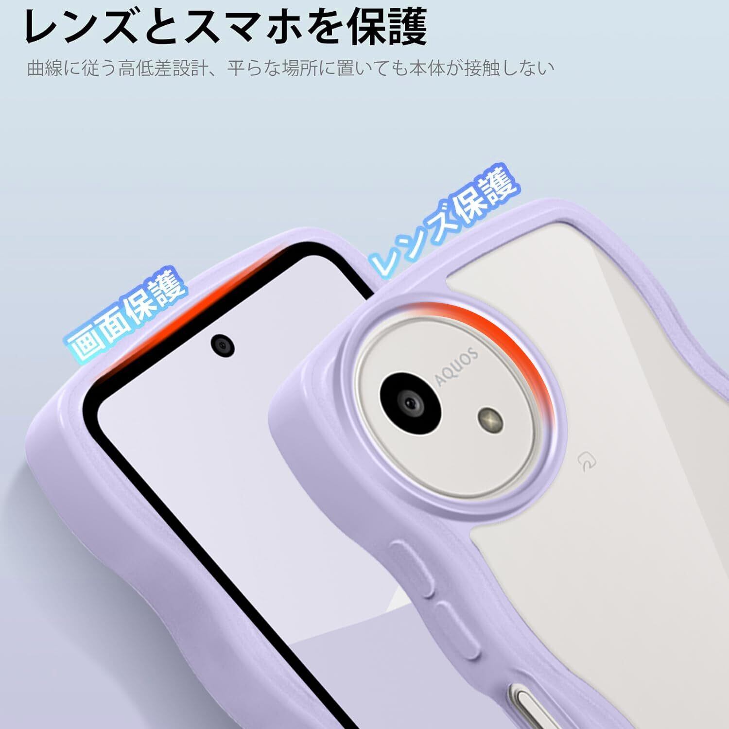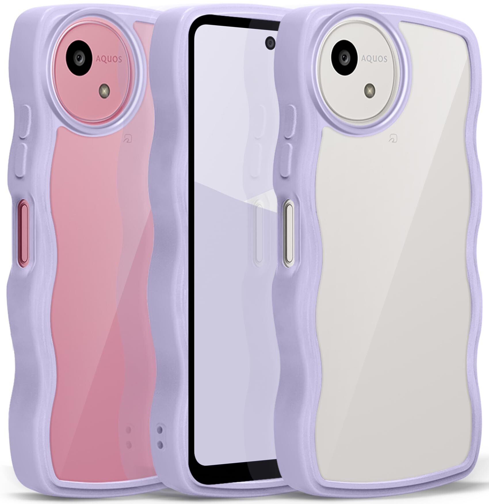 AQUOS wish5 SH-52F ケース クリア ウェーブ おしゃれ 韓国 かわいい 可愛い アクオス Wish5 スマホケース 人気 シンプル 滑り止め 薄型 軽量 耐衝撃 指紋防止 レンズ保護 ストラップホール付き シリコン 透明(パープル)