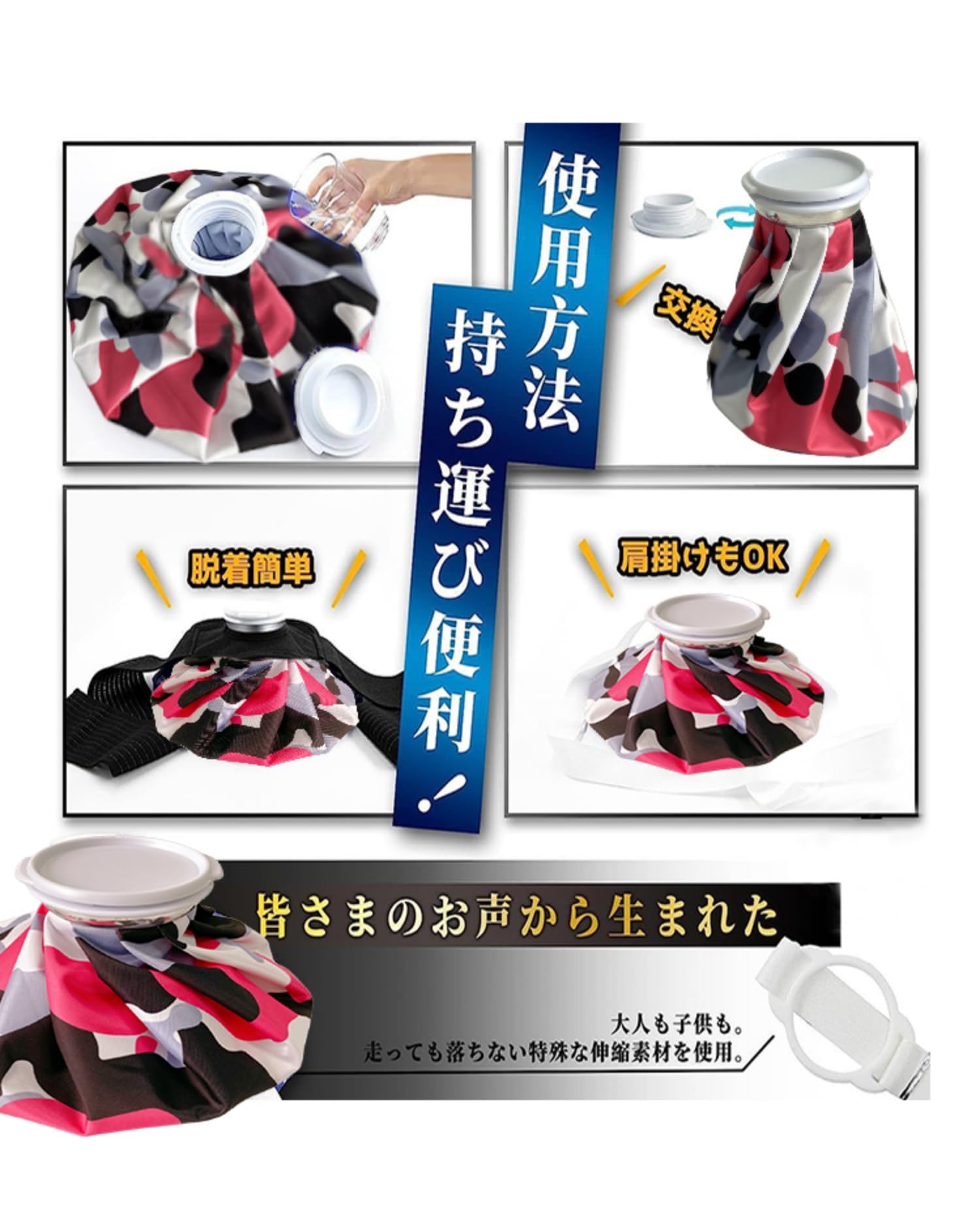 【冷感機能】氷と水を入れる事で応急処置が行えます。野球、サッカー、ゴルフなどスポーツを行った後のクールダウンを行えます。