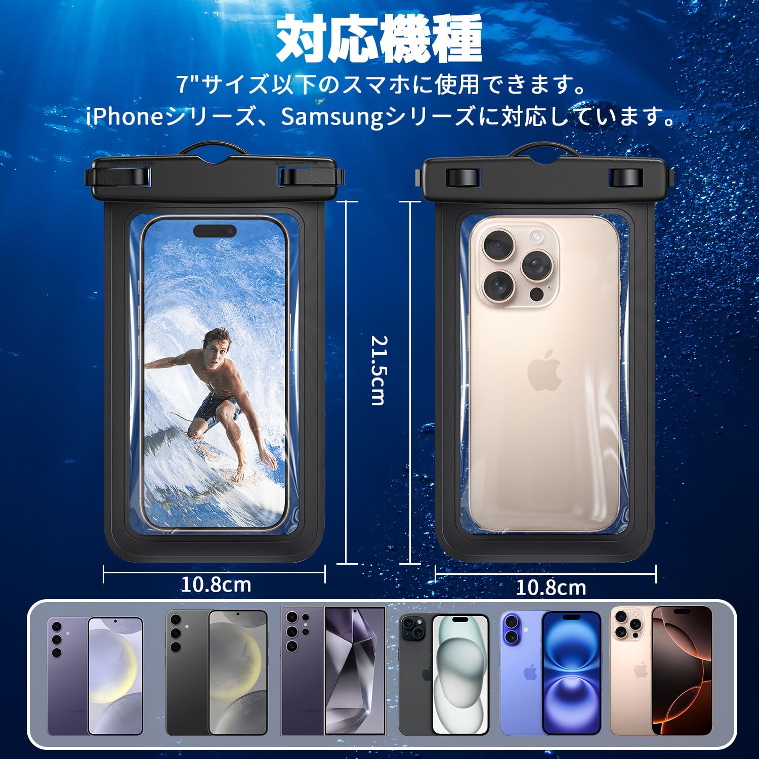 【IPX8認証】 スマホ 防水ケースはIPX8防水で、水深30メートルまで潜り、水中を自由に撮影できます。