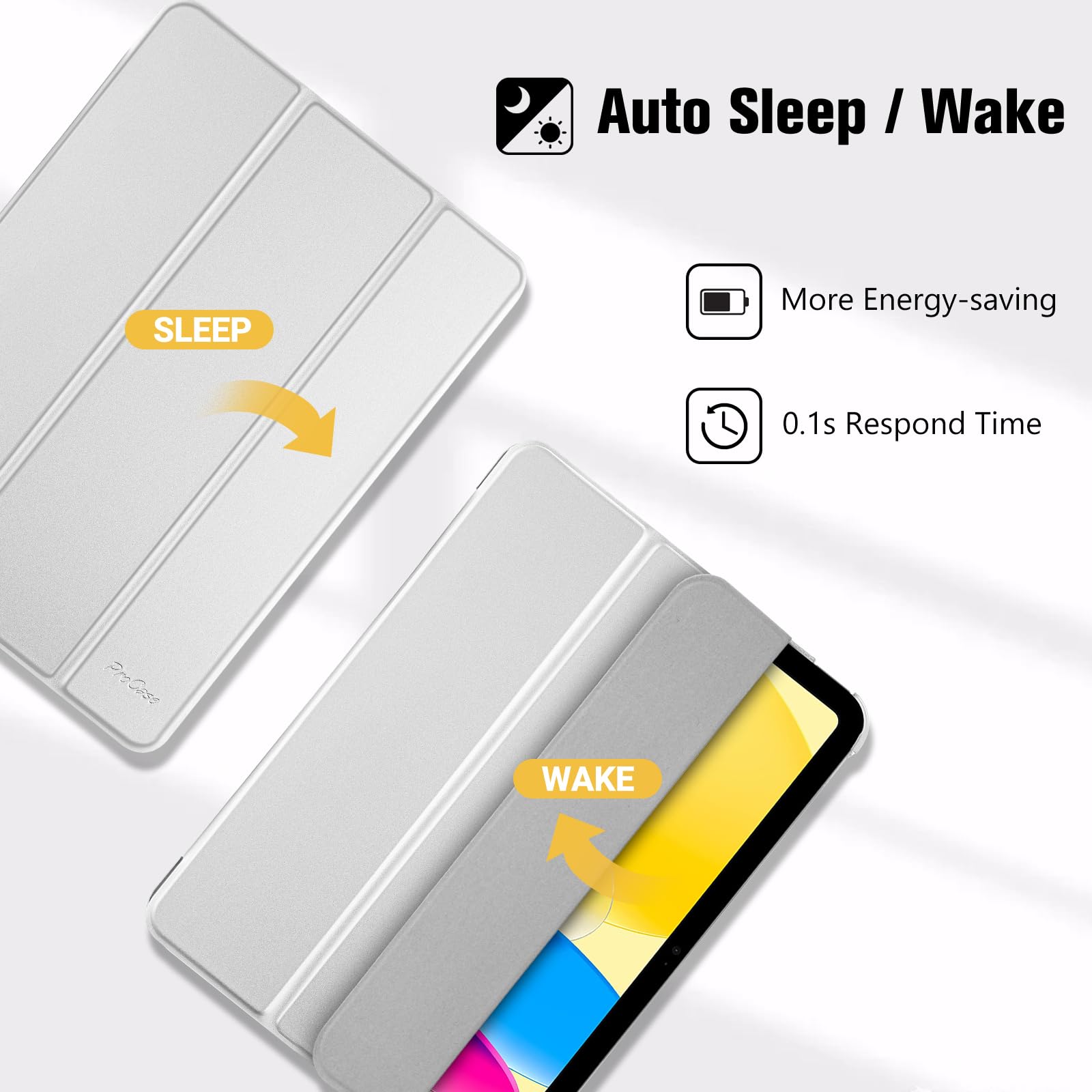 ProCase iPad 11世代/10世代 ケース iPad(A16)11インチ 2025/10.9インチ 2022通用 軽量 耐衝撃 三つ折り スタンド スマートカバー(シルバー)
