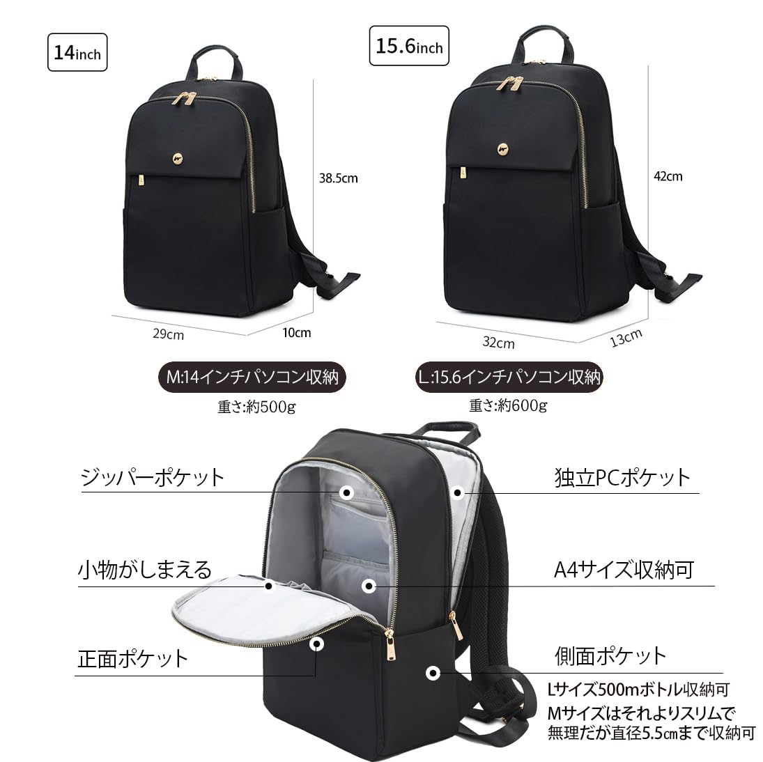 CC-MAX リュック レディース ビジネス バックパック 14in 15.6インチ PC パソコン カジュアル A4 通勤 撥水 軽量 旅行 防犯 金具ロゴ ブランド おしゃれ キャリーオン 大人 CC2303