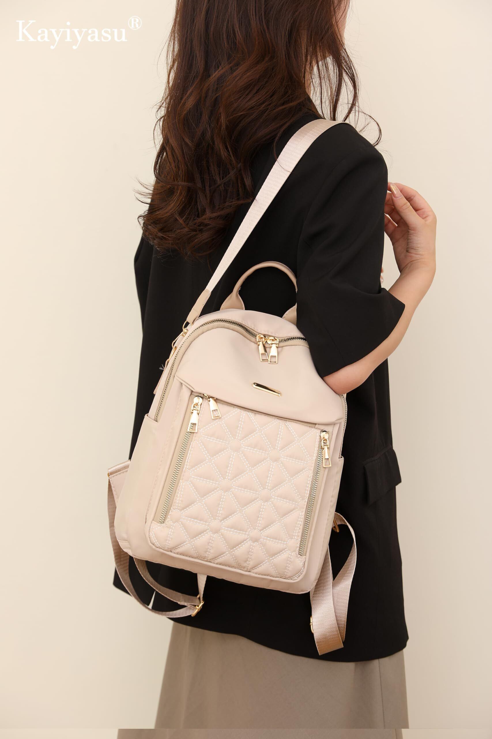 上質な生地:レディースリュックサックは最高の生地のデザインで作られ、上質なナイロン生地、撥水性、肌に優しい、しなやかで、色褪せない、生地全体が高級感があり、お出かけコーディネートも全体的にエレガントに見えます。 重量:0.43kg、遠足や通勤の女性にぴったり、ちょうどいいサイズのバックパックは、必要な物を簡単に入れることができ、上品でエレガントです。