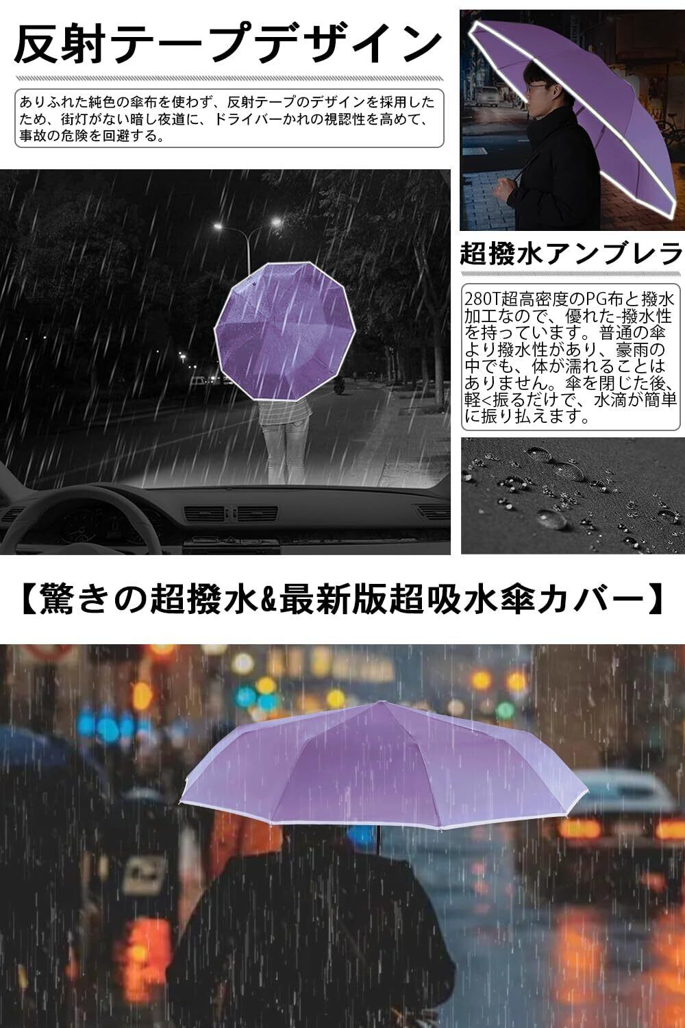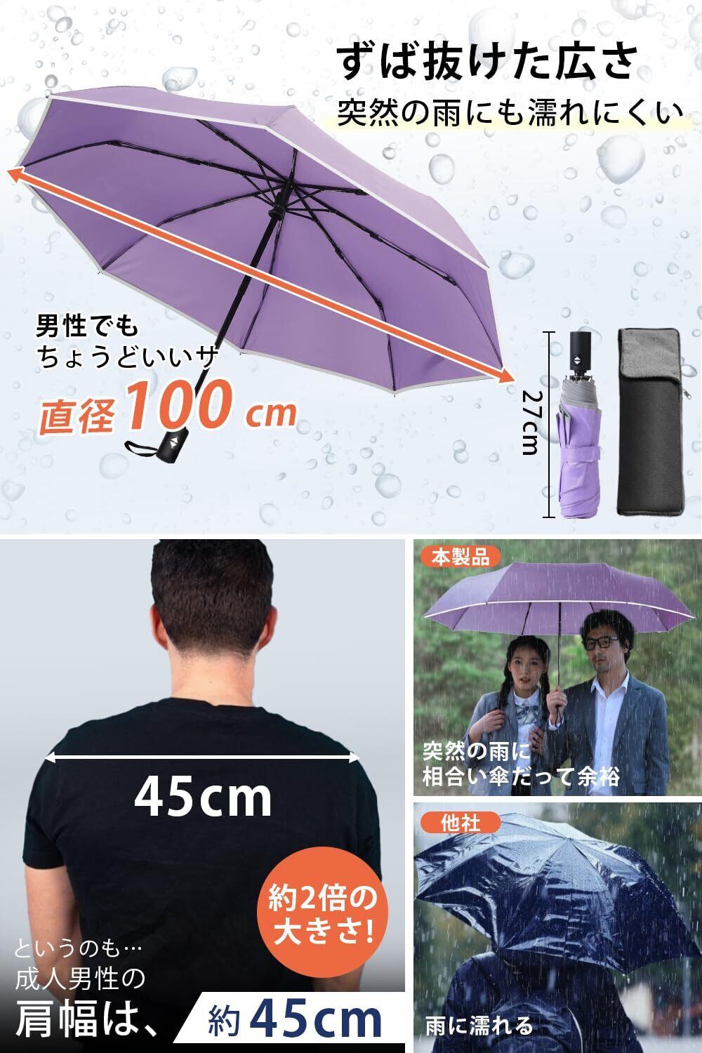 2025年最新版改善点『超軽量おりたたみ傘 メンズ・最新の構造設計を採用しました・反射テープデザイン・強風に耐えられる・傘テフロン加工』改善点:1.私たちの防風傘は、強風に負けないダブルベントキャノピーを採用しています。折り畳み傘人気の傘として、喜ばれています。2.私たちの雨傘は、テフロン加工されたキャノピーで作られており、厳しい天候に耐え、あなたを守ります。3.おしゃれな反射テープデザインで、街灯がない暗い夜道に、ドライバーの視認性を高めて、使用者の安全性も向上できる。4.傘は小さな力で開閉できます。5.開くときの衝撃力は小さく、自身と周りの人々の安全も保護します。6.閉める時も、小さい力でできるので、女の子、子供、そして高齢者でも簡単に使用できます。折り畳み傘 メンズ 軽量 傘の重量は約260g、 ごこの自動開閉折りたたみ傘は市場の自動開閉折り畳み傘(通常350-450g以上 )より40%軽いです。260g VS 350g以上。頑丈で耐久性のあるグラスファイバー製の傘骨を8本採用することで高強度を実現、一般的な折りたたみ傘よりも耐風性に優れています。