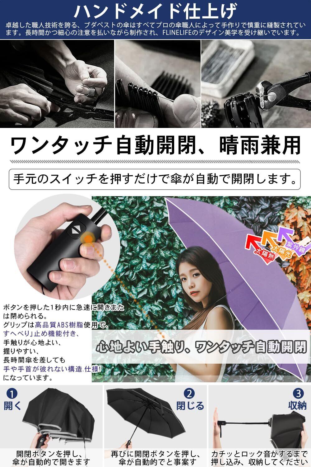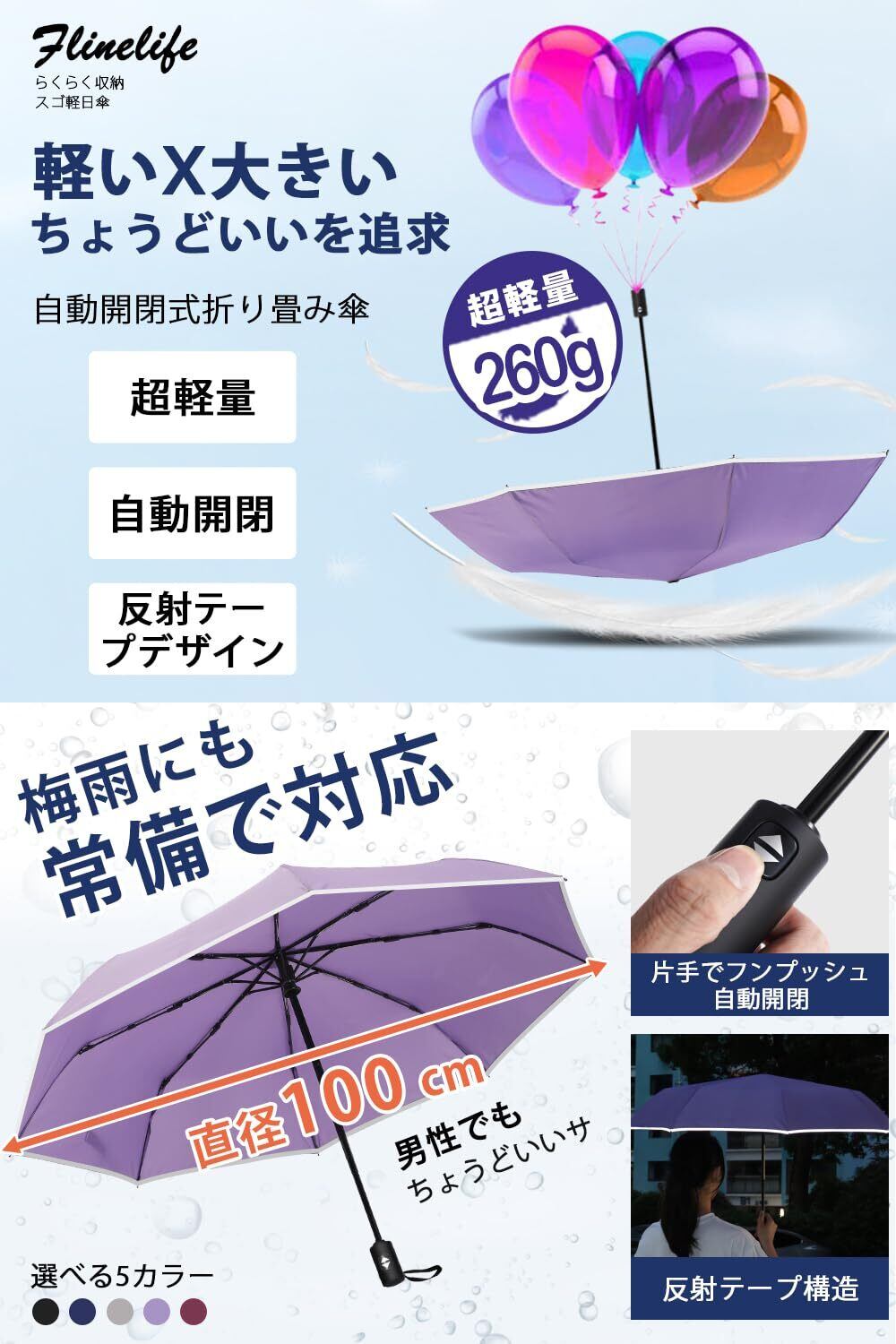 【令和6年新版】折りたたみ傘 ワンタッチ 自動開閉 メンズFlinelife 260g超軽量 8本骨自動開閉 折り畳み傘 おりたたみ メンズ レディース 折りたたみ傘 ワンタッ 撥水速乾 耐強風 男女兼用 携帯しやすい 超吸水傘カバー付き