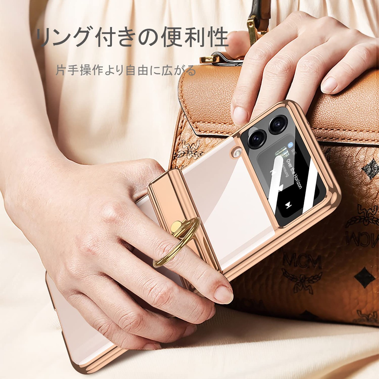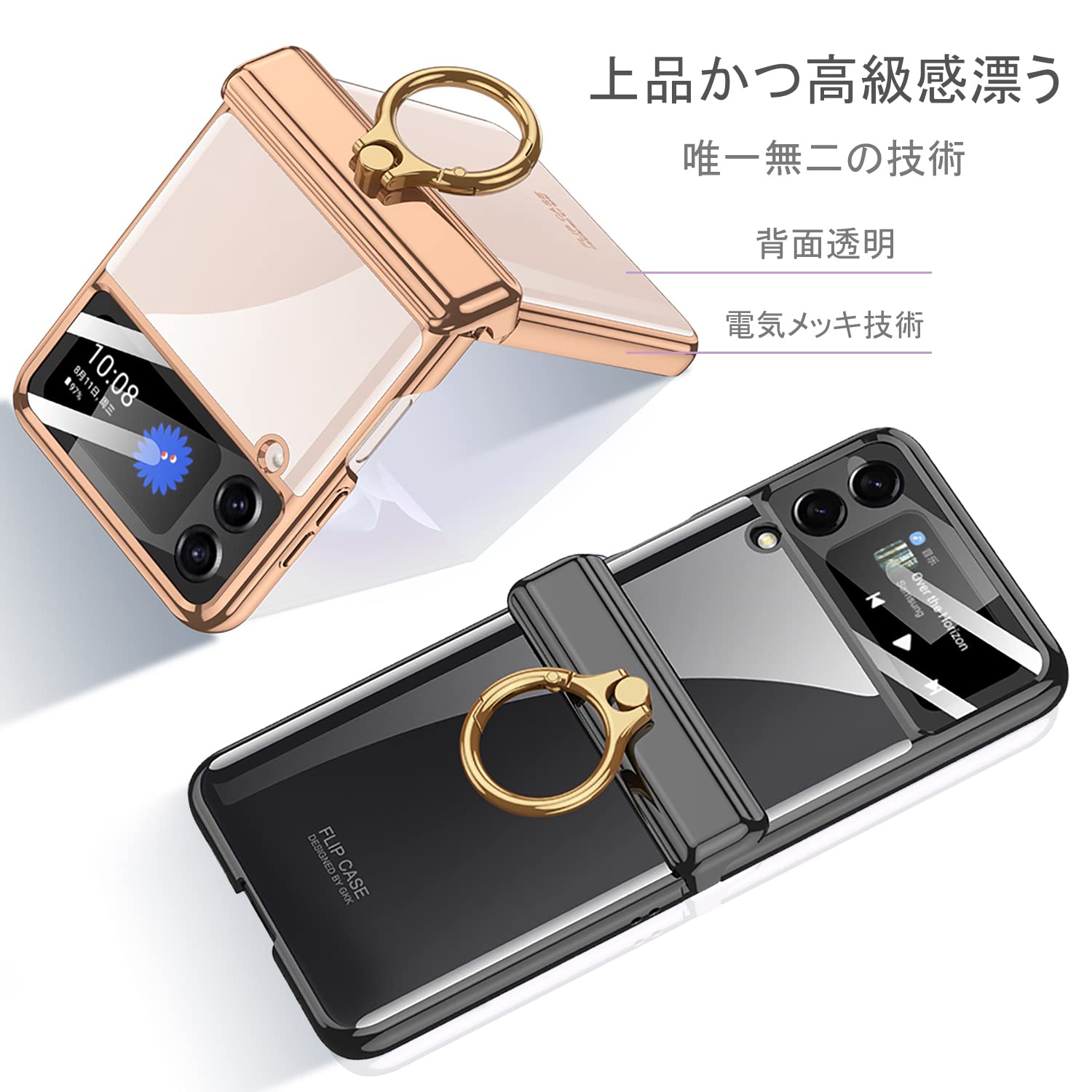 「互換性モデル」Samsung Galaxy Z Flip4 / docomo SC-54C / au SCG17「6.7インチ」用 クリア リング付きケース。※ご注意:折りたたみスクリーン保護フィルムは含まれていません。また、※ご注意:Z Flip3に対応しません、Z Flip4だけに兼用です。