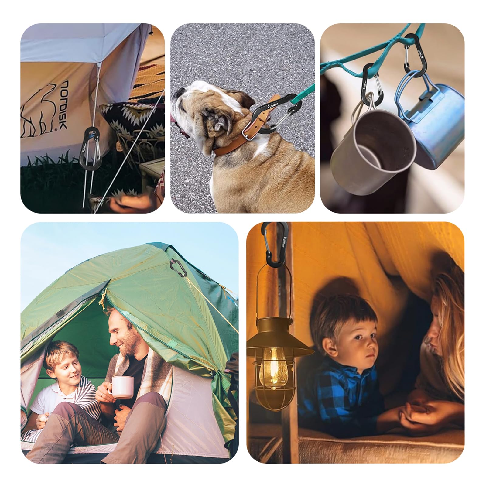 キャンプ カラビナはテントやタープ設営時、簡単に装着でき、強い風でも破損する事無くしっかり使えています。本小型 カラビナは登山、クライミング用途では使用できませんのでご注意ください。