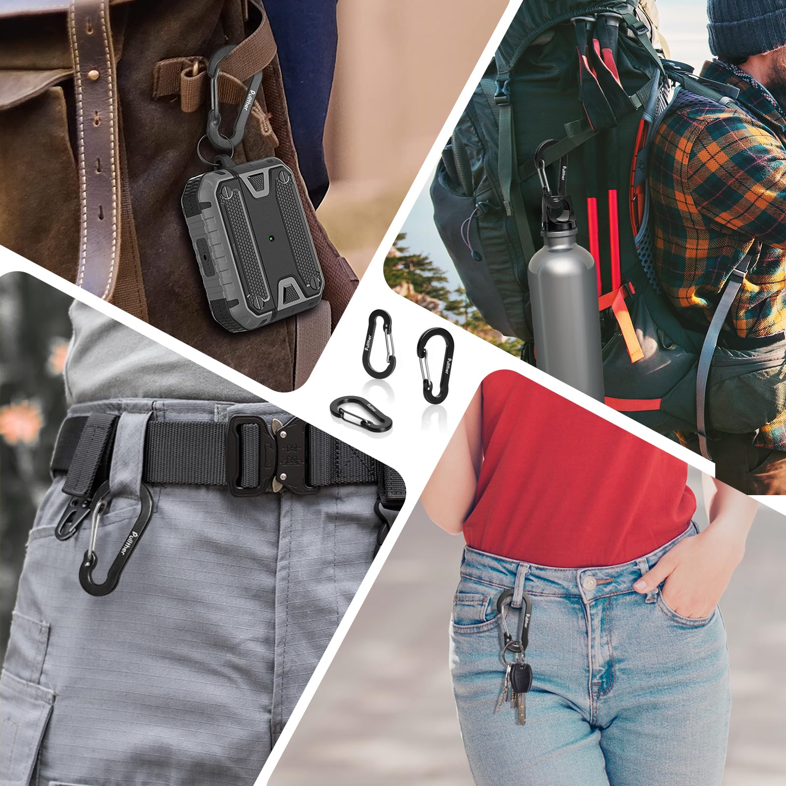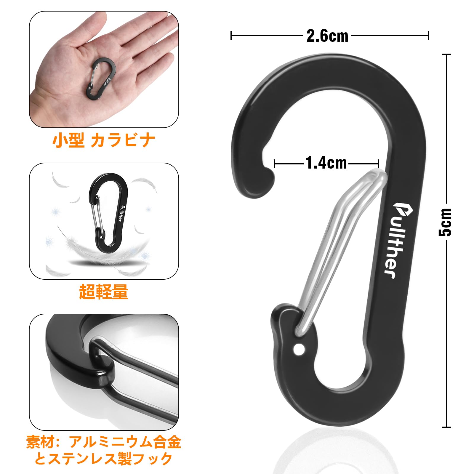Pullther カラビナ 小型 5cm 超軽量 錆びない アルミ合金 アウトドア ガイロープ カラビナ 釣り 20個