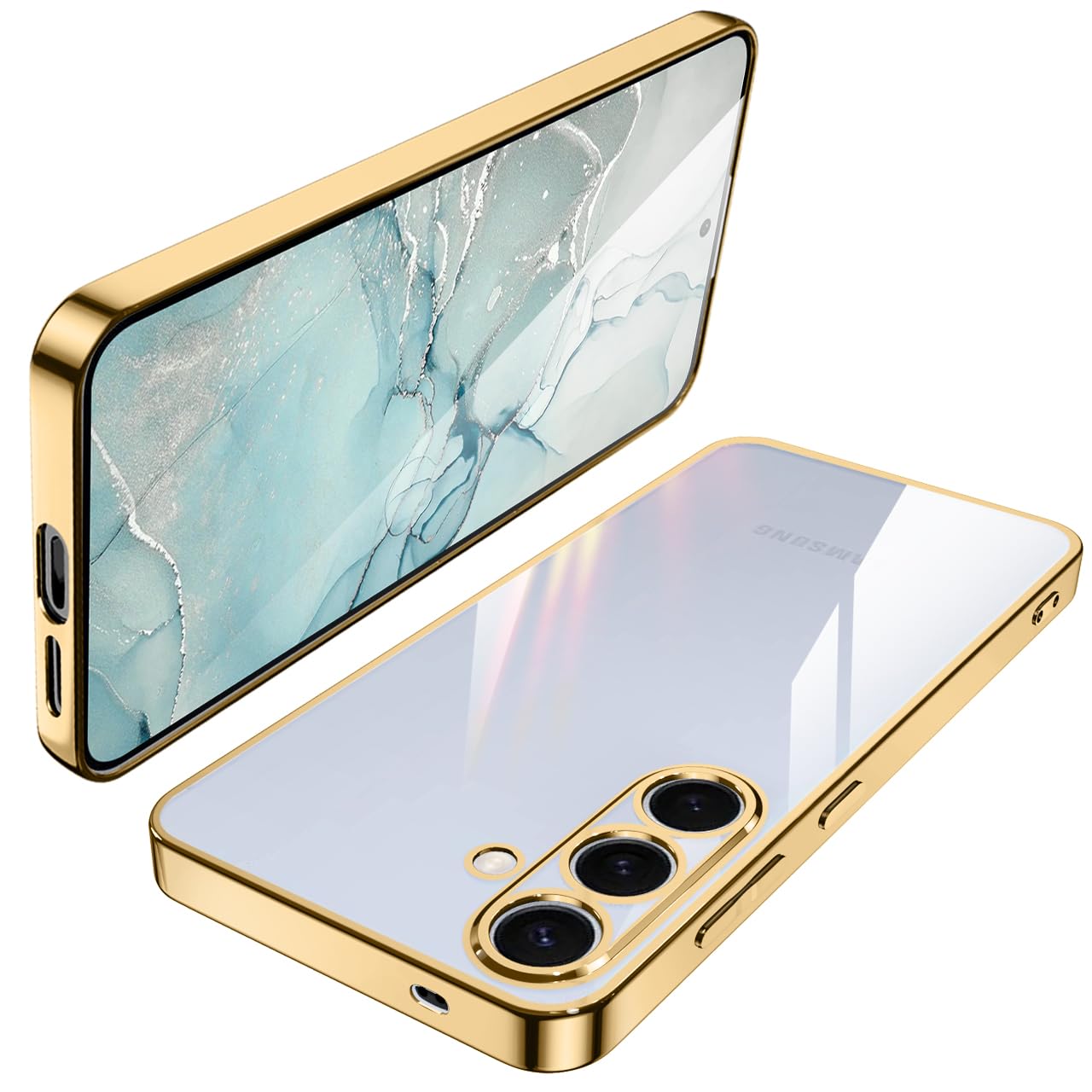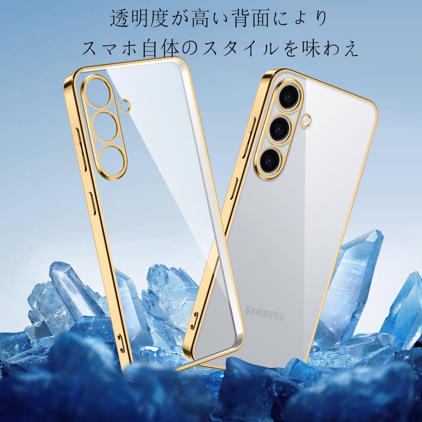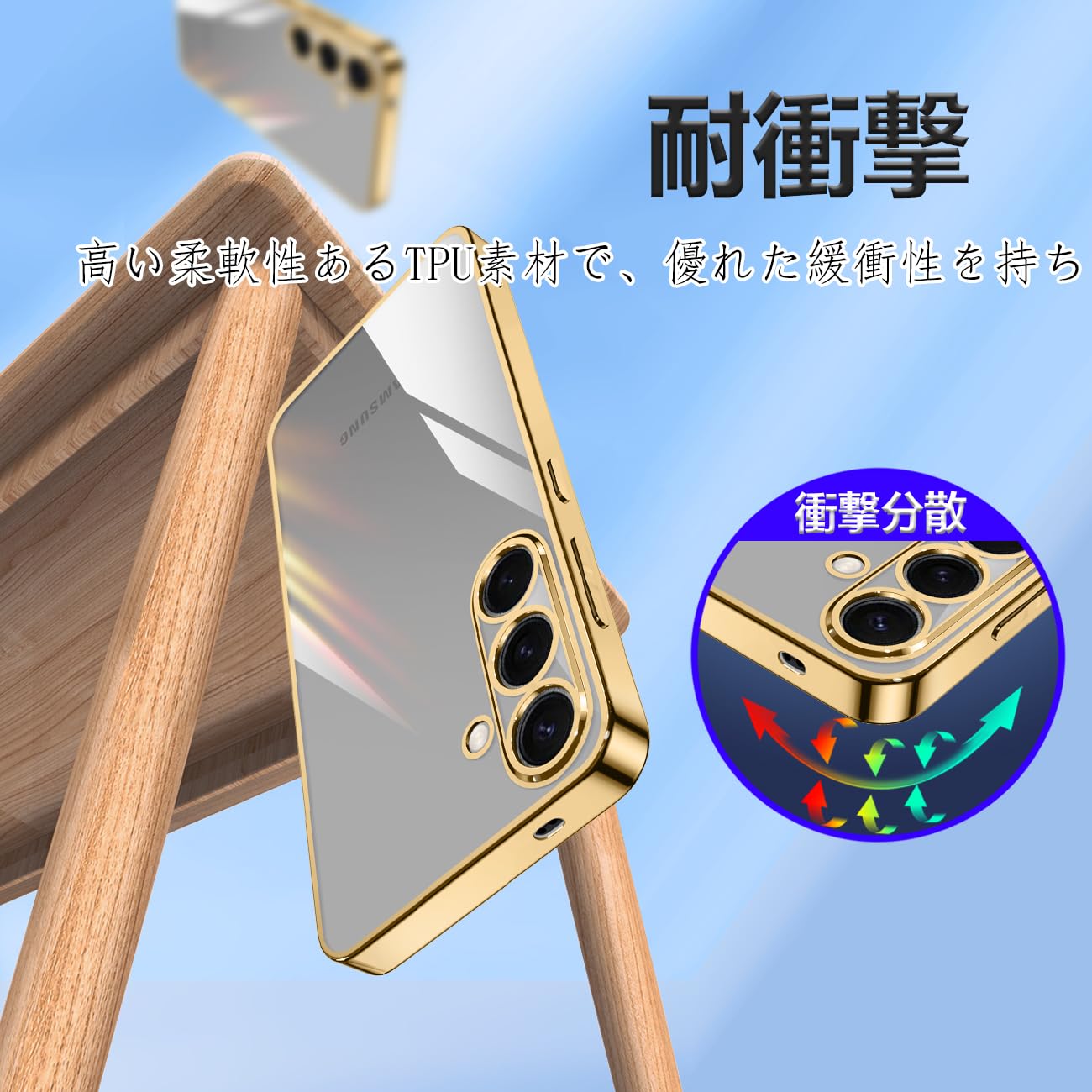 Galaxy S25 ケース クリア SC-51F 耐衝撃 TPU レンズ保護 ソフト 透明 メッキ加工 ワイヤレス充電 ギャラクシーS25 スマホケース ラップホール付き (ゴールド)